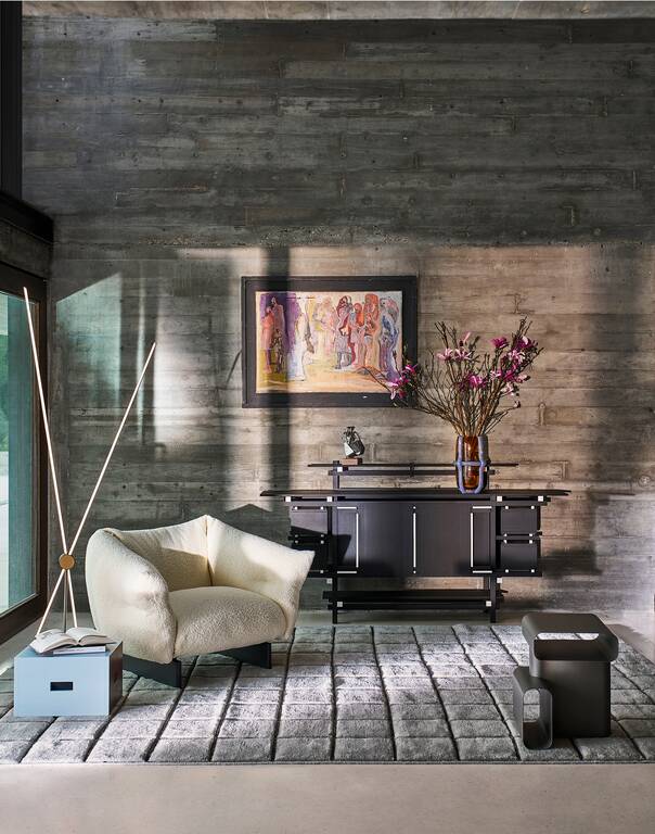 Patricia Urquiola以一種循環(huán)的方式重新思考家具設(shè)計(jì),從而推出了這款非常優(yōu)雅的扶手椅,倡導(dǎo)舒適與歡聚。木質(zhì)結(jié)構(gòu)將軟墊從地面撐起,賦予整體云朵般的輕盈之感。布藝套面圍合了扶手椅的外形,營(yíng)造出特別的折痕,凸顯其外形之美。其點(diǎn)睛之筆在于金屬骨架搭配了可循環(huán)PET纖維絎縫填料,如同舒適的羽絨被一般圍住了靠背和扶手結(jié)構(gòu)。