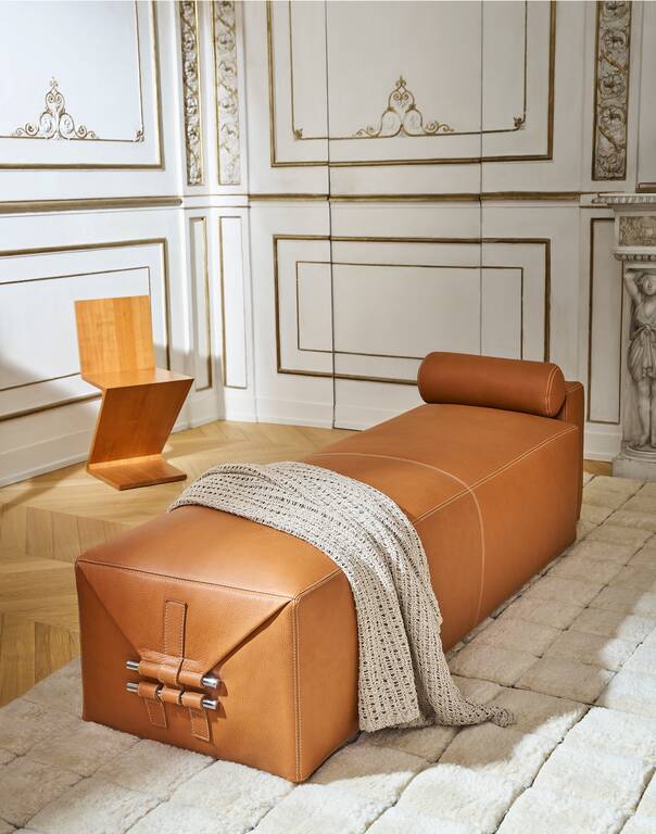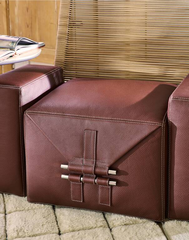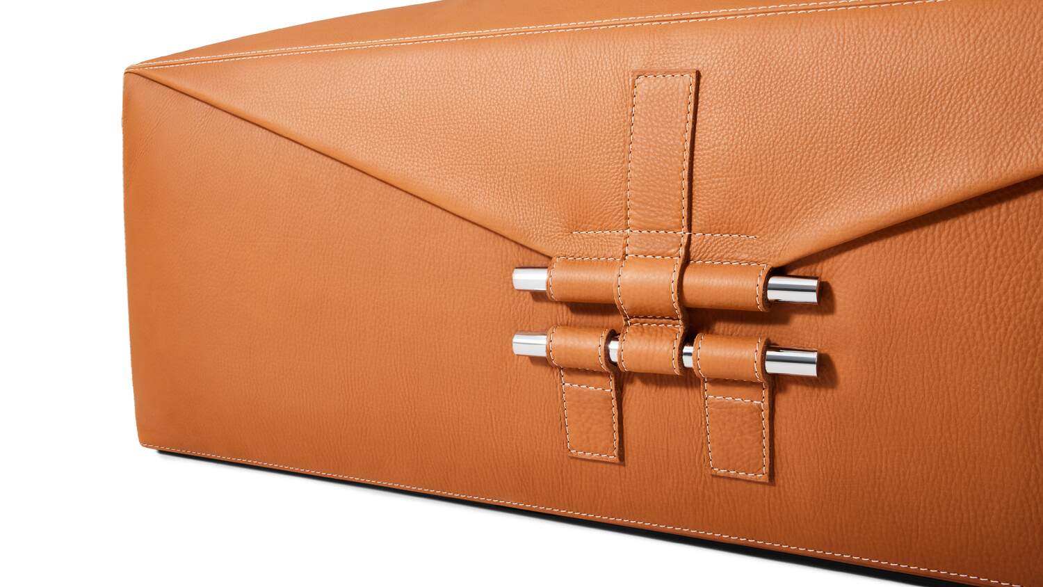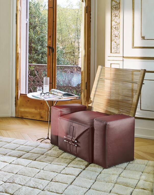 Somewhere El-S是Philippe Starck對其與Cassina三十年合作的致敬之作。該座椅系列讓人聯(lián)想到高級時裝的典型剪裁細(xì)節(jié),這些細(xì)節(jié)被融入到三個沙發(fā)凳(兩個正方形,一個長方形,也可用作有靠背或無靠背的躺椅)和一把扶手椅的設(shè)計中,扶手椅也有多種類型可供選擇。這一獨(dú)特的創(chuàng)作可引發(fā)多種聯(lián)想,有時是一個手袋,有時是一個手提箱,有時又是用包裝紙包裹著的禮物。靈感來源于馬具世界的手工搭扣綴以金屬元素,進(jìn)一步豐富了這些款式——這是貫穿所有家具的一條主線,在扶手椅上,這一細(xì)節(jié)位于前部,而在沙發(fā)凳上則位于兩側(cè)。