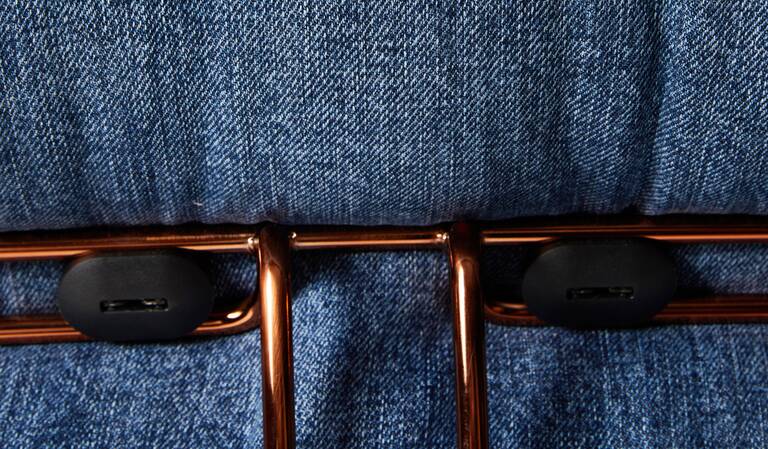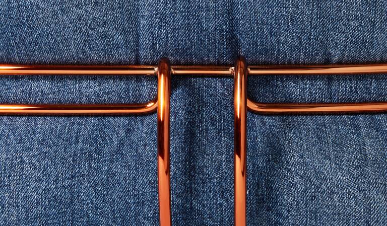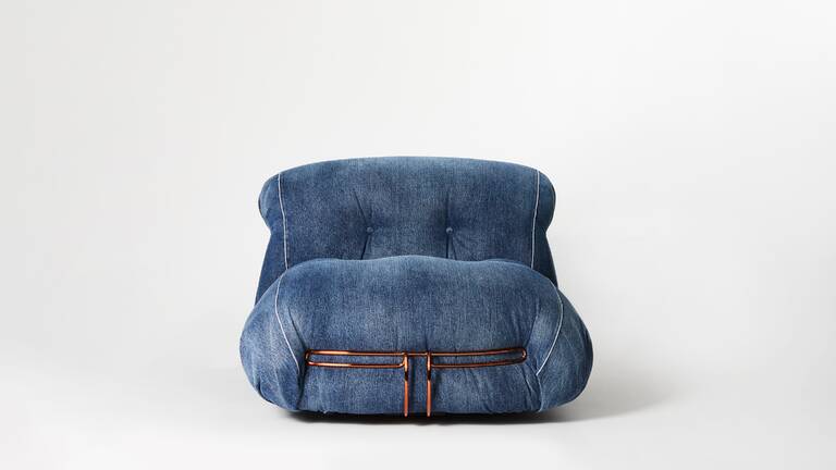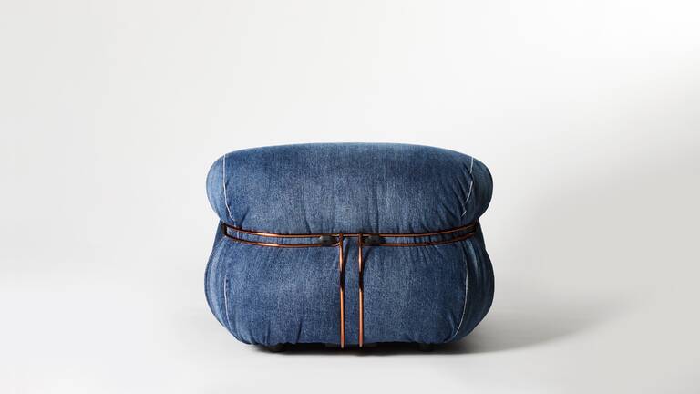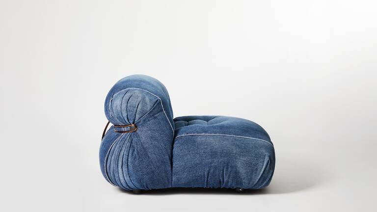 Soriana by Afra & Tobia Scarpa poltrona in denim crafted by Roy Roger’s采用最高品質(zhì)的日本自鎖邊牛仔布制成,這是一種特殊的長(zhǎng)纖維美國(guó)棉布,專門用上世紀(jì)60年代的傳統(tǒng)有梭織機(jī)織造,其特點(diǎn)是在白邊上伴有一條被稱為“自鎖邊”的紅線,可防止磨損。