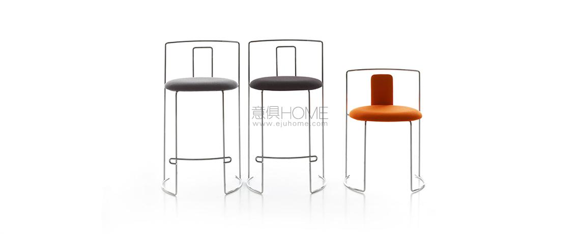 Leggera, aerea, impilabile. Gaja è un oggetto contemporaneo che rimanda alla classicità pura del razionalismo. La struttura aperta, realizzata in tondino di acciaio elettrosaldato e cromato, nasce per un piccolo ristorante e viene in seguito inserita nella SimonCollezione per il suo carattere agile e pratico. Il modello è disponibile con schienale imbottito o nella versione a sgabello, entrambi ideali per l’arredo in ambito soft contract.