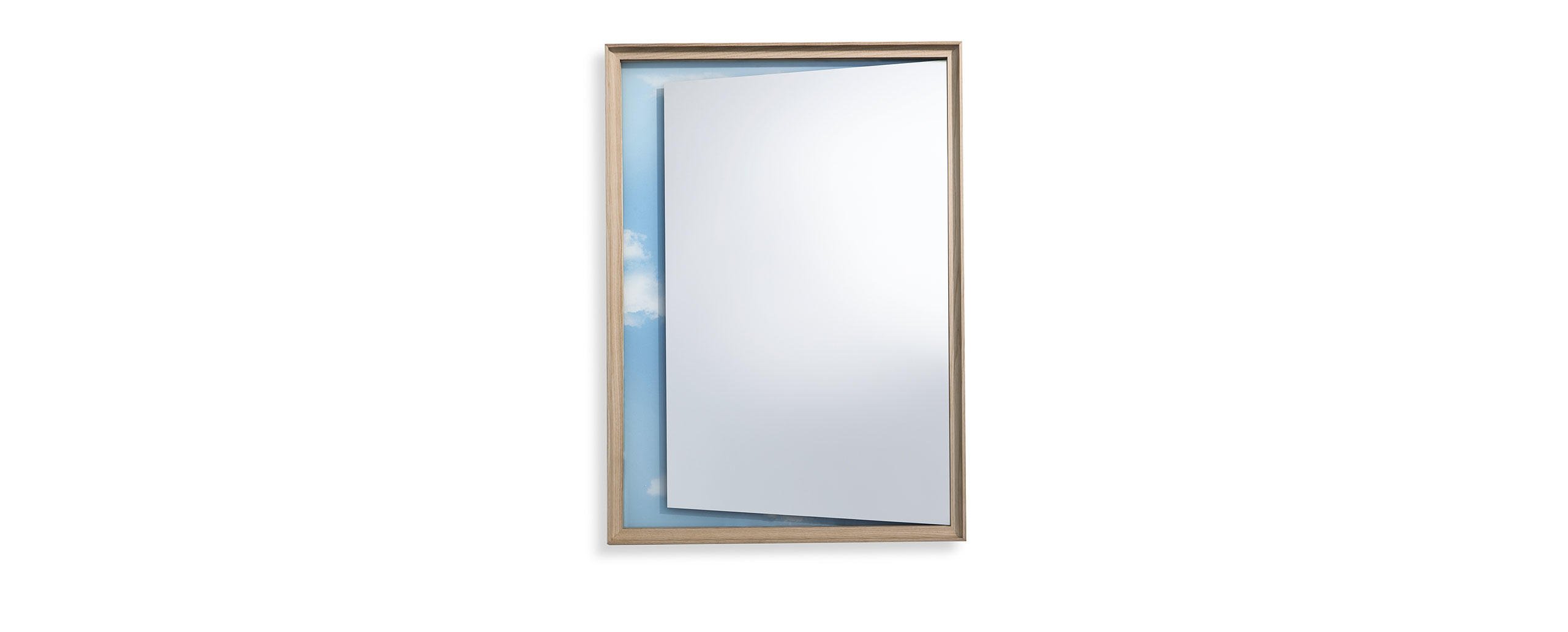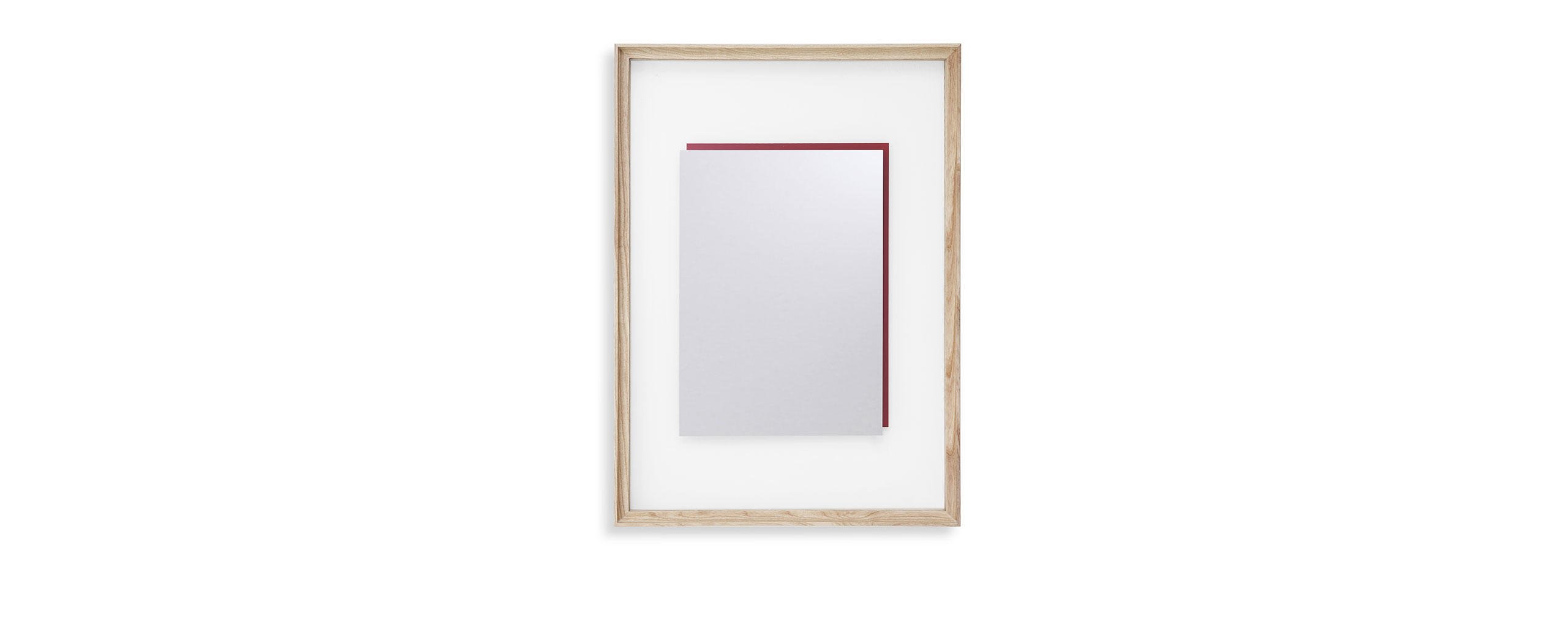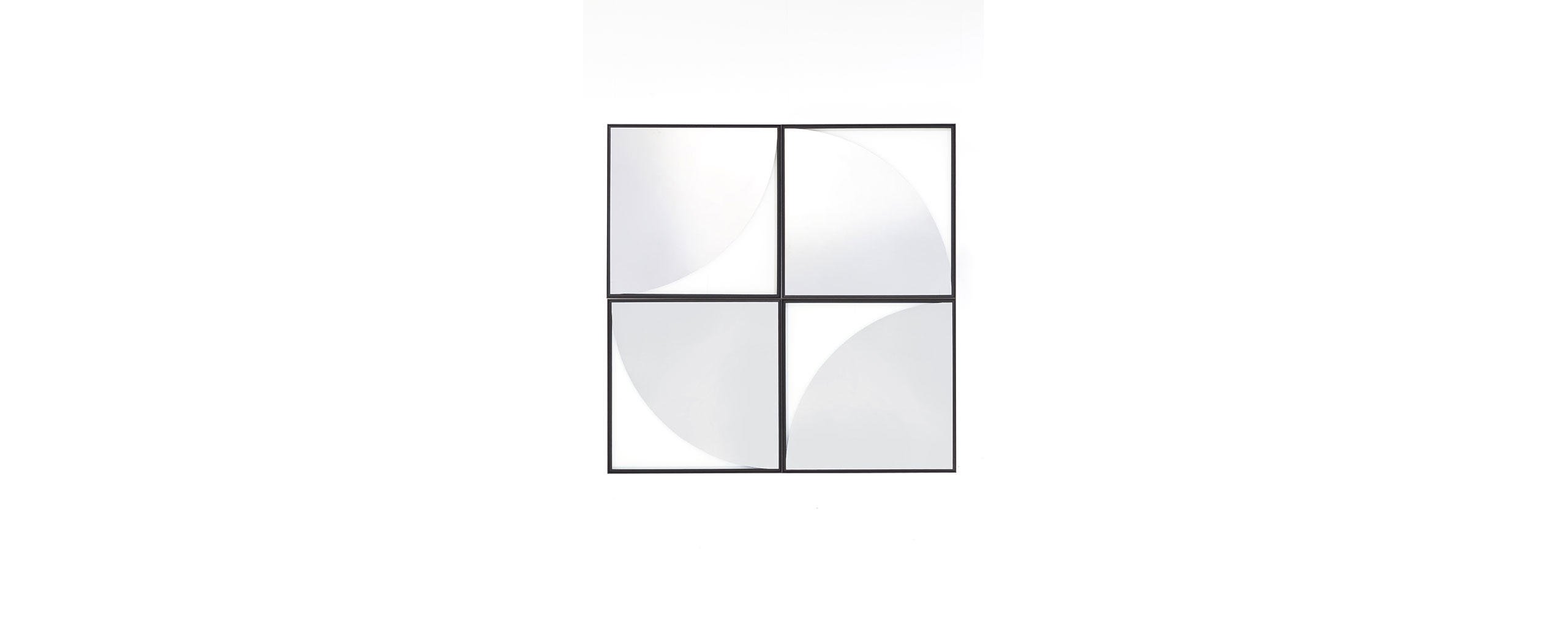 Una collezione di oggetti ibridi di grande maestria costruttiva, ideati da Ron Gilad coniugando ingegneria costruttiva e alta ebanisteria. 12 esemplari unici, ciascuno inserito in una cornice di frassino bianco o nero, con superfici e forme differenti. Ogni opera è composta da due vetri accoppiati a una distanza di 12 mm: lo specchio frontale è retro-verniciato nei colori arancione, blu o rosso, mentre lo specchio posteriore riflette una geometria di giochi grafici in doppia prospettiva. La cornice smontabile consente la pulizia dello specchio ed è dotata di giunzioni visibili che esaltano il manufatto di falegnameria MedaMade. Le forme oblunghe, quadrate o rettangolari diversificano la proposta conferendole un senso di unicità artistica.