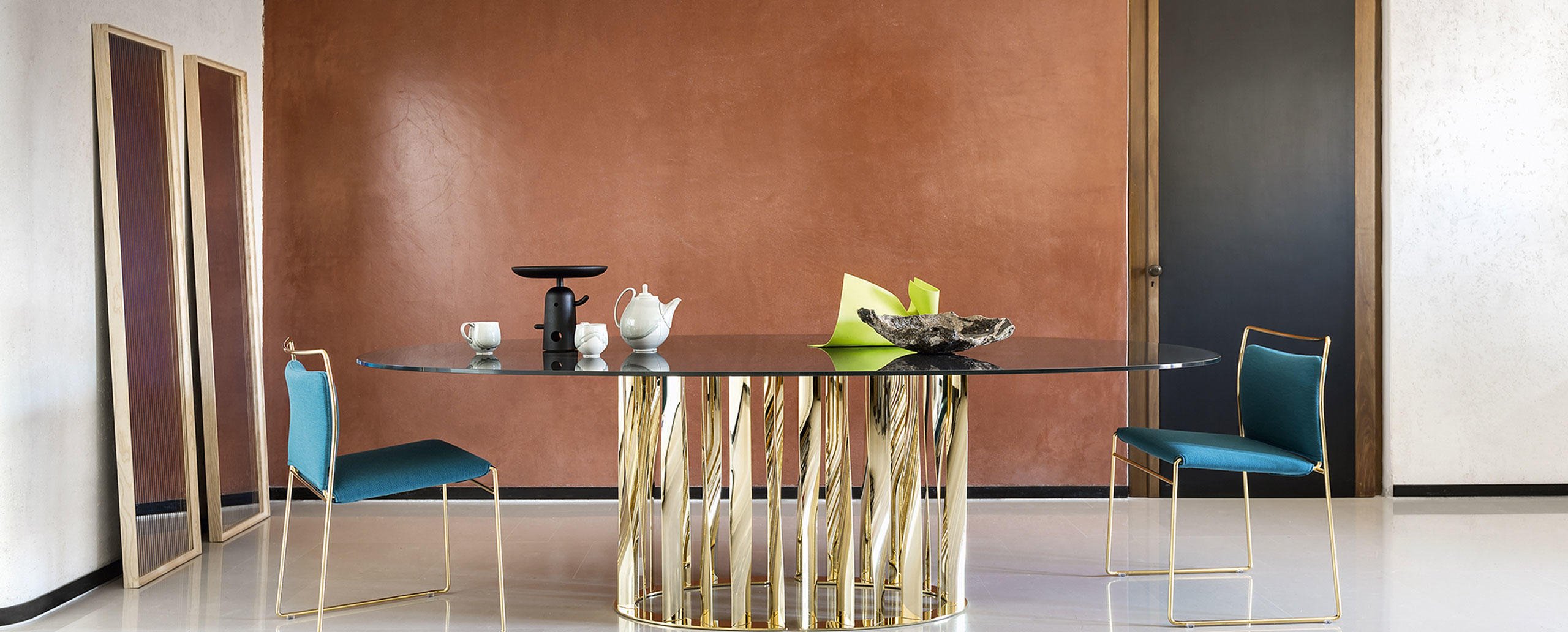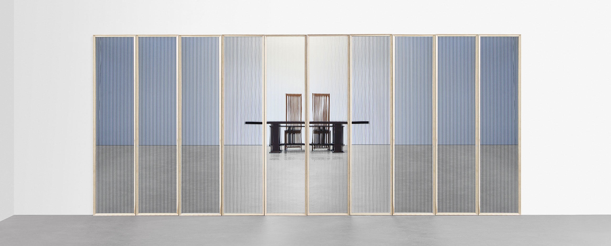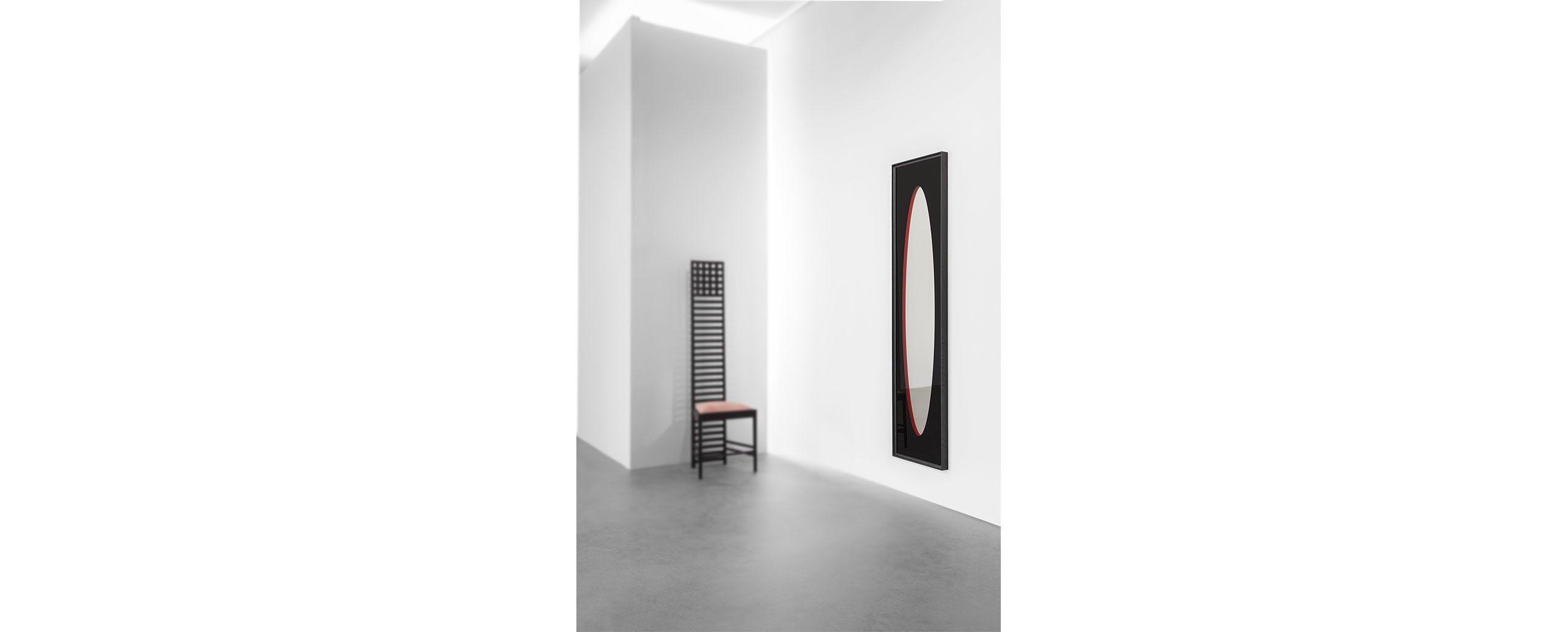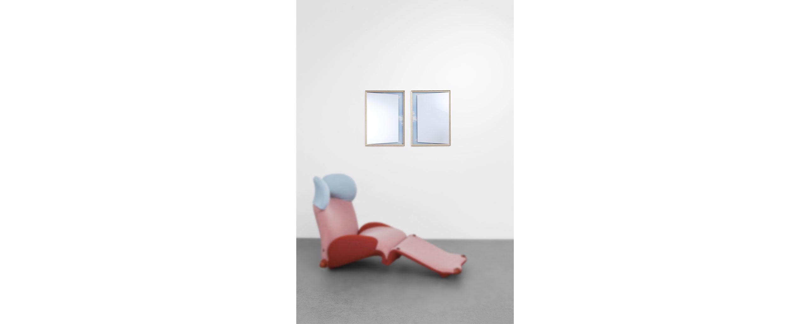 Una collezione di oggetti ibridi di grande maestria costruttiva, ideati da Ron Gilad coniugando ingegneria costruttiva e alta ebanisteria. 12 esemplari unici, ciascuno inserito in una cornice di frassino bianco o nero, con superfici e forme differenti. Ogni opera è composta da due vetri accoppiati a una distanza di 12 mm: lo specchio frontale è retro-verniciato nei colori arancione, blu o rosso, mentre lo specchio posteriore riflette una geometria di giochi grafici in doppia prospettiva. La cornice smontabile consente la pulizia dello specchio ed è dotata di giunzioni visibili che esaltano il manufatto di falegnameria MedaMade. Le forme oblunghe, quadrate o rettangolari diversificano la proposta conferendole un senso di unicità artistica.