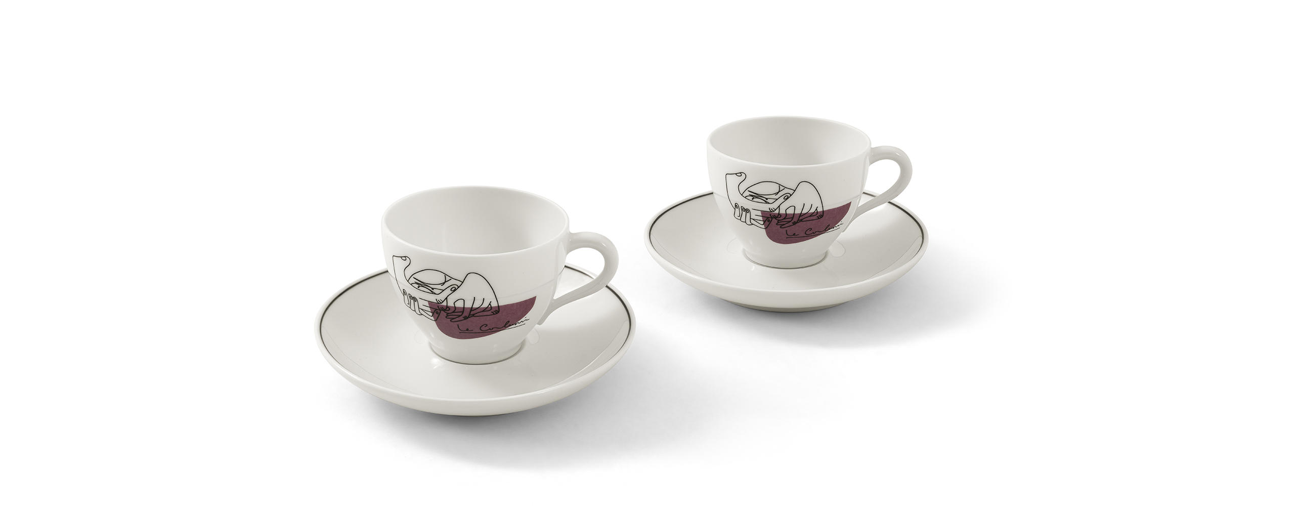 La collezione per la tavola firmata da Le Corbusier, originariamente realizzata per il ristorante Prunier di Londra, viene rieditata da Cassina grazie alla collaborazione con Richard Ginori, nel rispetto del progetto originale e con grande cura per l’autenticità. Nel 1961, la proprietaria Madame Prunier chiese a Le Corbusier la progettazione di un servizio da tavola per il suo ristorante con il motivo a mani intrecciate che si trovava nella parte inferiore dell’arazzo Les Mains, disegnato dal Maestro nel 1951 ed esposto in una sala privata del locale. Le Corbusier utilizzò lui stesso questi piatti nei quali si combinavano, come amava dire, qualità e gusto o “il gusto delle forme”. Service Prunier è in porcellana bianca, come il modello, con l’applicazione a mano del disegno originale di Le Corbusier, e comprende piatto piano, piatto fondo, piattino da dessert e tazza da caffè con piatto.