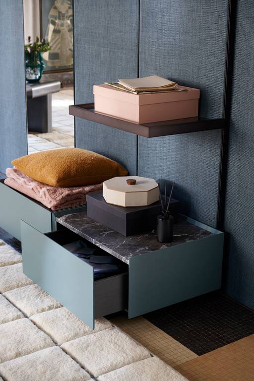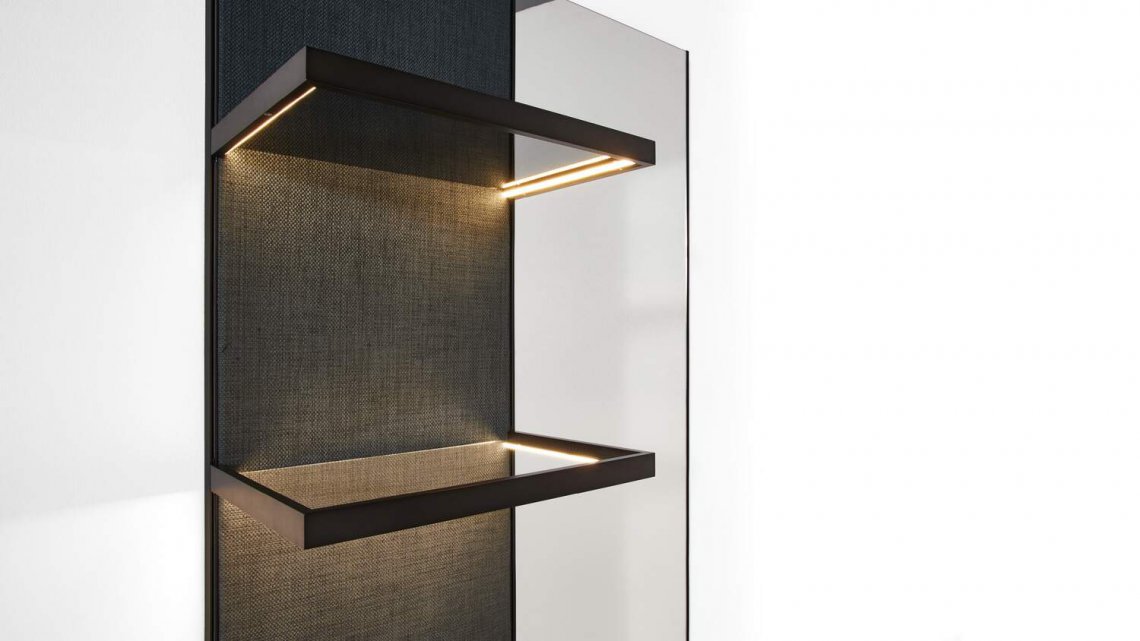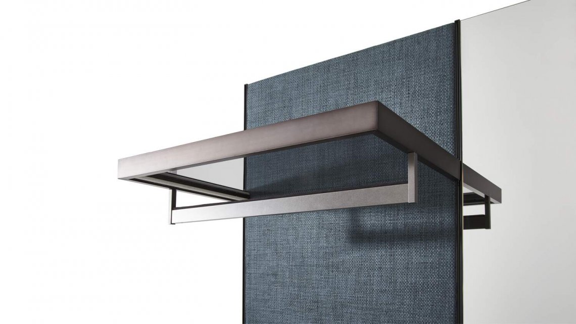 創(chuàng)新特點(diǎn)在于減少了約30mm的面板和支架厚度,從而可以偽裝結(jié)構(gòu)并使墻壁像畫布一樣震撼??蚣芎椭尾捎秒姎饣瘮D壓成型鋁齒軌,面板有不同的處理,如木質(zhì)漆面或鑲貼木、鏡面玻璃或背漆玻璃、布藝,以及為臨時裝飾或墻紙準(zhǔn)備的版本。此外,還配有一系列的附件,如帶有珍貴玻璃的不同深度的面板,可以使用LED燈照明,擱板上有一個配備了微纖密封圈的掛衣軌道,可以牢固而安靜地放置衣架,并且還有一面鏡子。