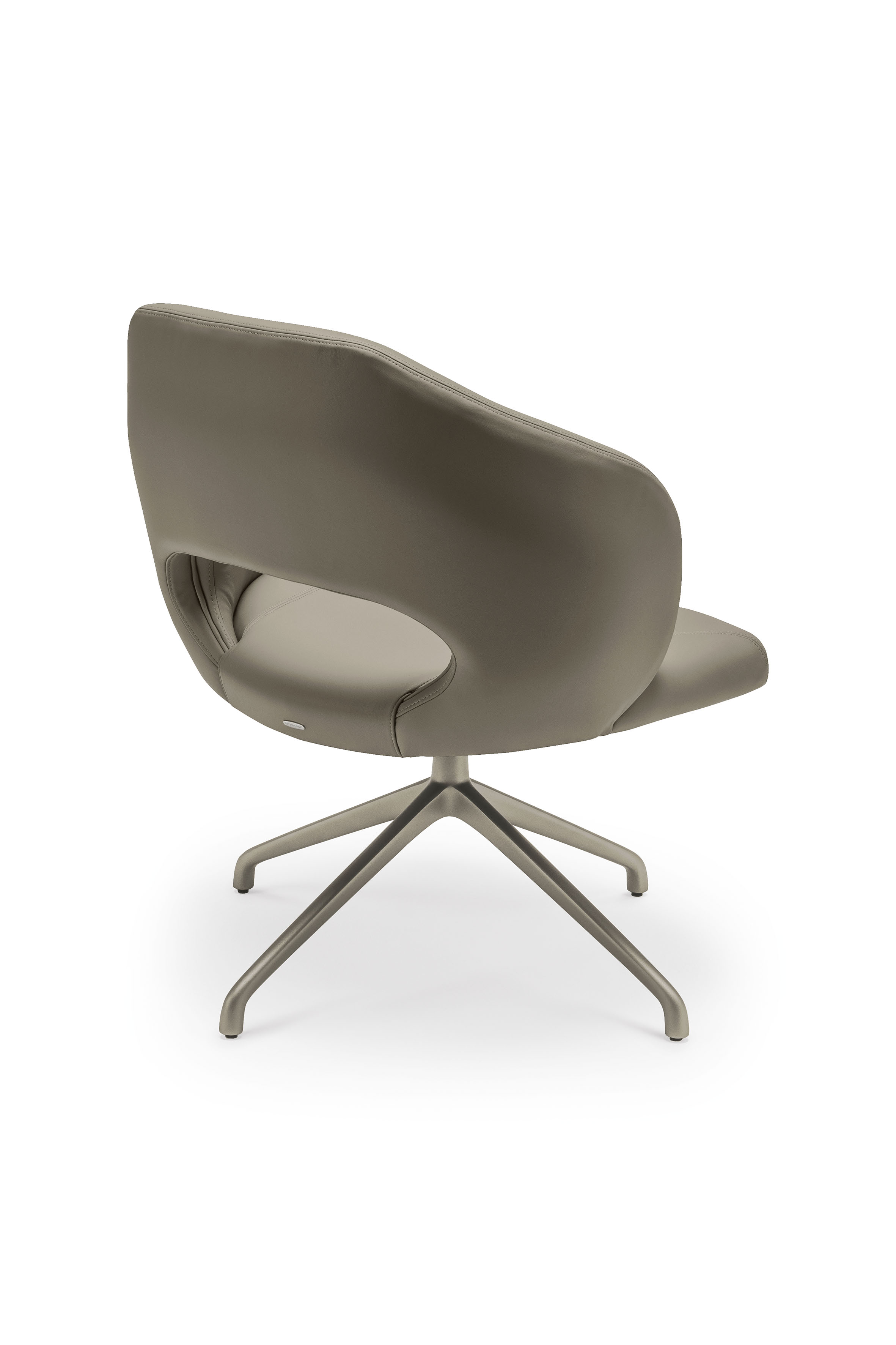 The body is packed with bespoke details, crafted with the utmost care and precision. The seat and backrest, modelled like two complementary shells, have a polygonal shape, enhanced by rounded edges and gentle curves. If this designer chair is a shell, it cannot but reveal a magnificent pearl inside, created, or rather extracted, by the designer, helped by the elliptical cavity in the backrest.