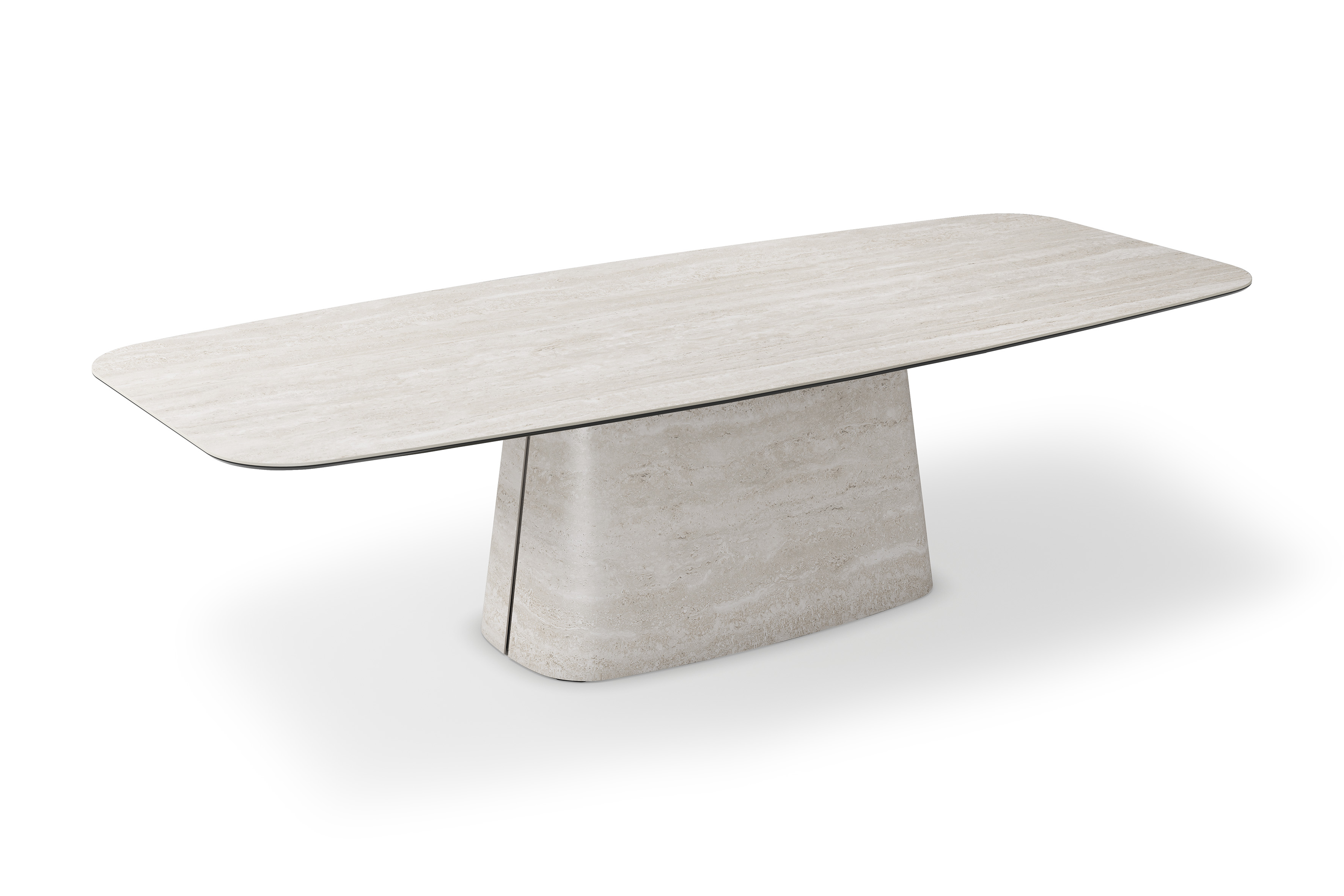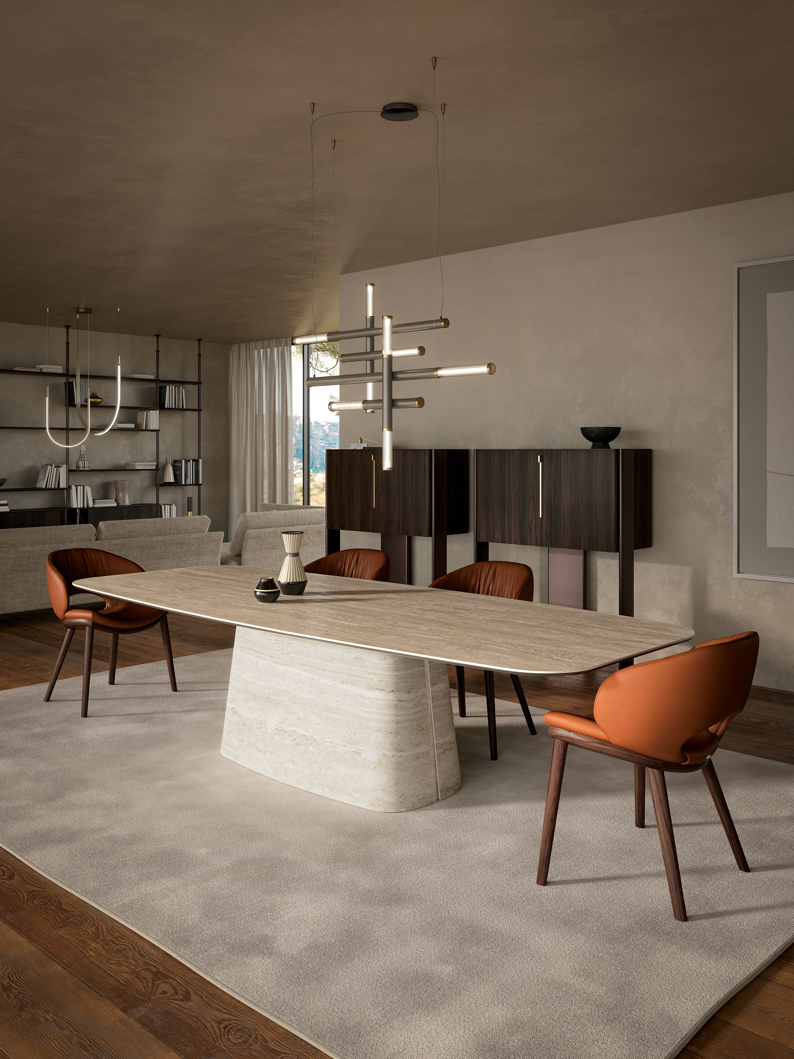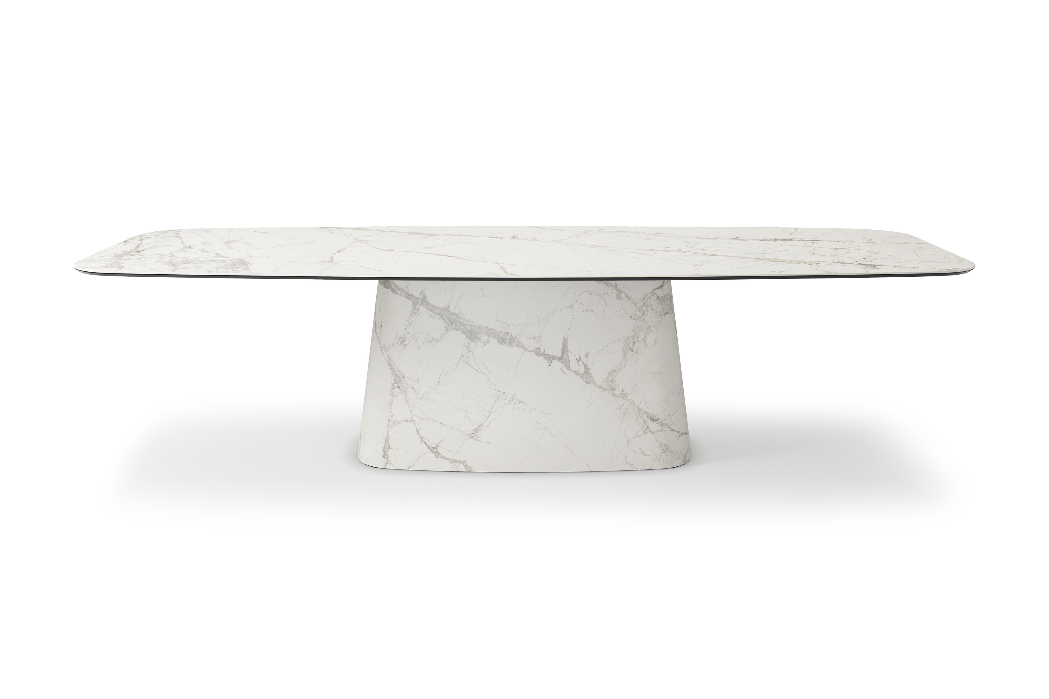 The Napoleon family of tables comes in numerous versions to meet the most varied aesthetic needs and optimally furnish a modern dining room.The central base has been produced using a cutting-edge ceramic modelling technique, which marks the boundary between before and after on the spectrum of possible outcomes offered by this ever more flexible material. This is the first appearance, in fact, of curved slabs in the Keramik collection, sculpted to create bases for ceramic tables with gracefully curved shapes and rounded edges.