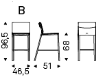 Stool with steel frame. Cushions and covering in synthetic leather, fabric, synthetic nubuck, micro nubuck or soft leather as per sample card. The cover is not removable.