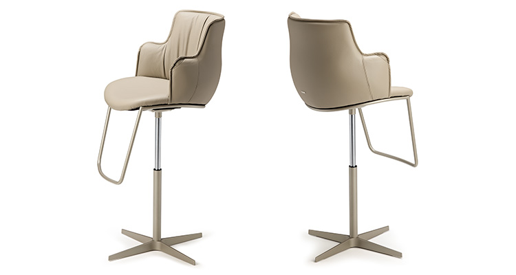 The soft folds that decorate the interior of the backrest contrast with the taut and rounded shell. In the lower part of the backrest, the deep structure and the connection of the legs emphasise the softness of the curves. A design with soft lines that envelop the body, support the posture and make the modern dining room a cosy environment to feel at home in.