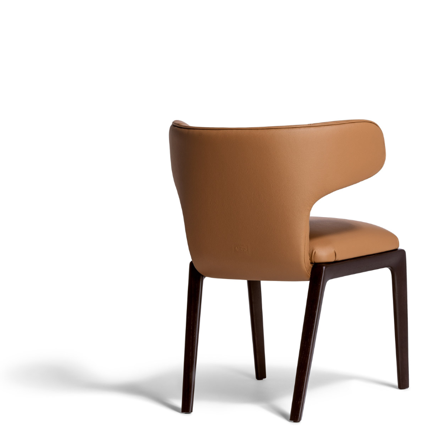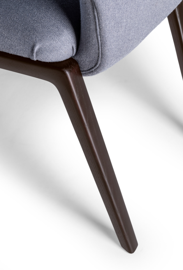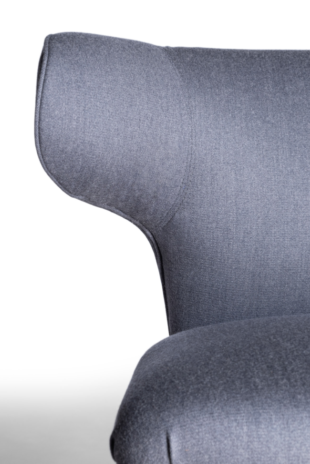 La poltroncina DUO ha lo schienale che si allarga lateralmente in due “orecchie” accoglienti che hanno la funzione di braccioli. Il sedile convesso gioca con la leggera concavità dello schienale, movimentando i volumi. La ricca imbottitura, completamente rivestita in Pelle Frau? o tessuto, aggiunge un surplus di comfort e invita al relax e alla conversazione. Le gambe in legno massello...