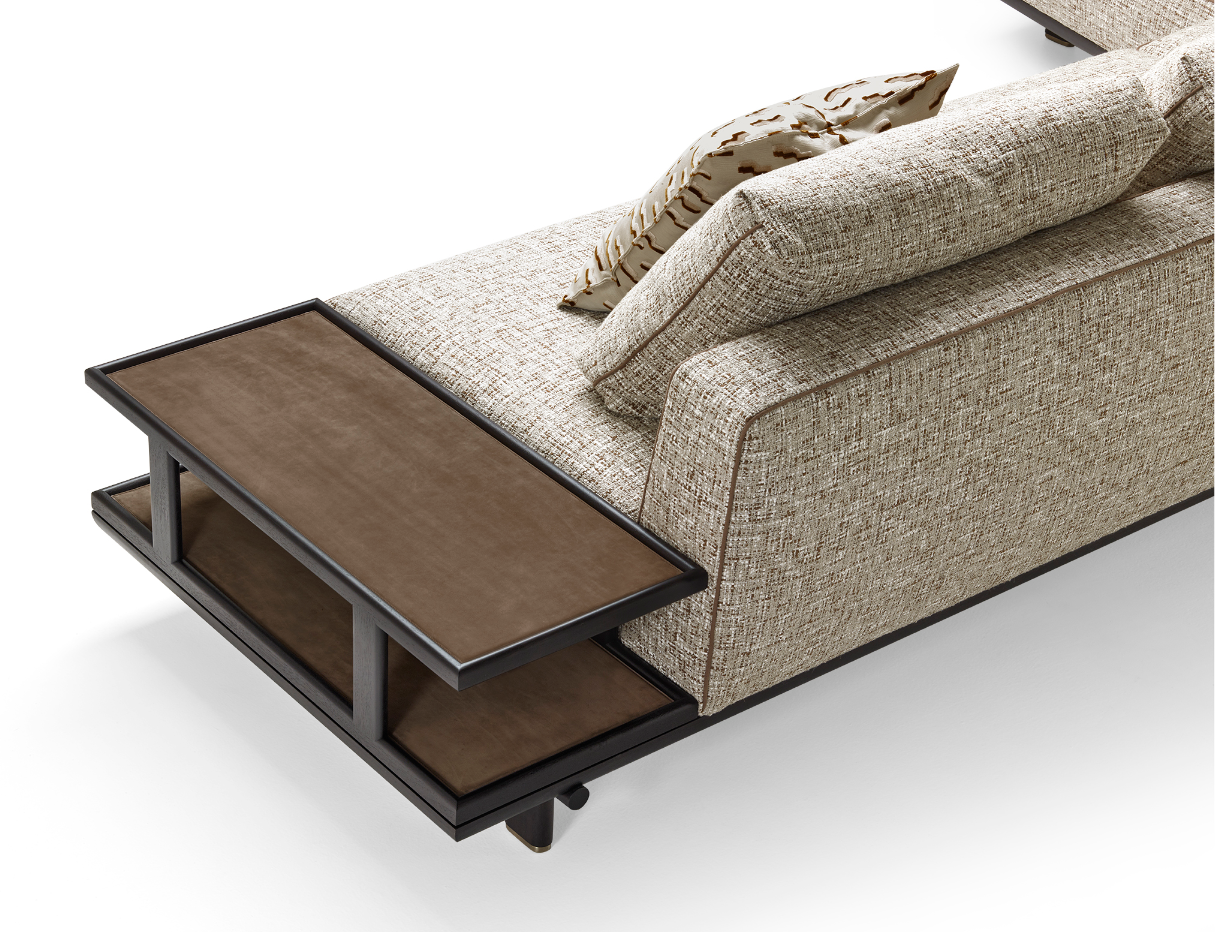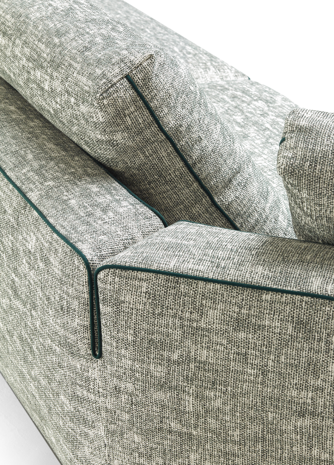 Fillungo è un divano modulare sollevato da terra disegnato da Giuseppe Casarosa e disponibile sia in versione lineare che componibile. La base, in massello di noce americano, è composta da un telaio a sezione curva su cui si innestano i piedi. Il divano, rivestito in tessuto sfoderabile, è caratterizzato da eleganti dettagli sartoriali come il piping in gros grain a contrasto che definisce con un segno netto la siluette degli imbottiti lungo tutto il suo perimetro. Fillungo è un progetto lontano da estremismi e ostentazioni che vuole esaltare un design semplice ma sofisticato allo stesso tempo e in grado di rispondere alle esigenze del presente.