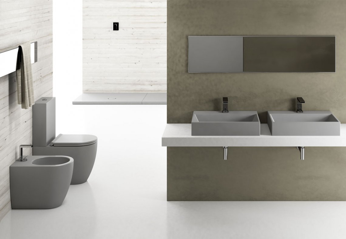 壁掛式整體式衛(wèi)生間,帶有兩個(gè)版本的水箱和機(jī)制。提供多種飾面。