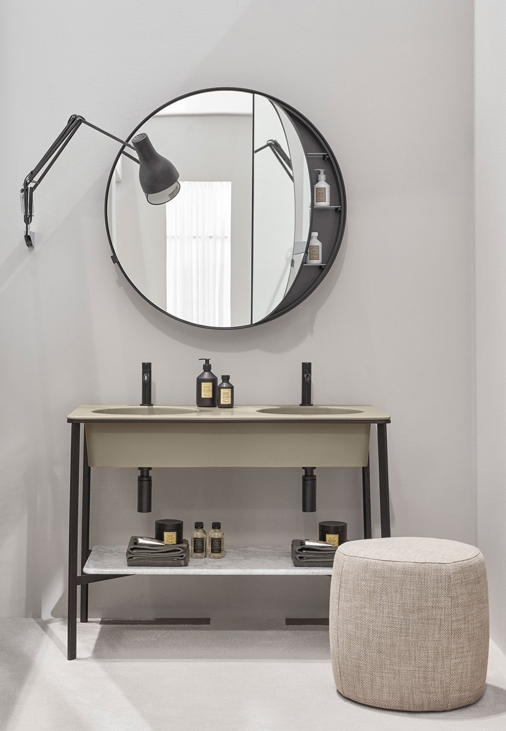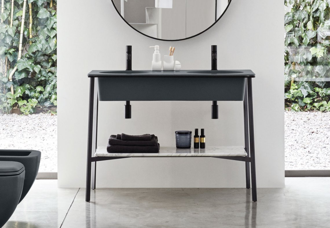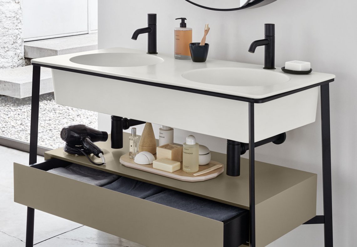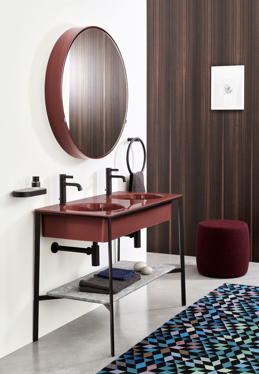 模塊化系統(tǒng),帶實用的雙陶瓷盆,有多種飾面可供選擇,安裝在涂有不同飾面的鋼結構上,可選擇組合方便的漆木或大理石臺面或實用的抽屜容器,有漆飾面或精美天然色木質飾面。