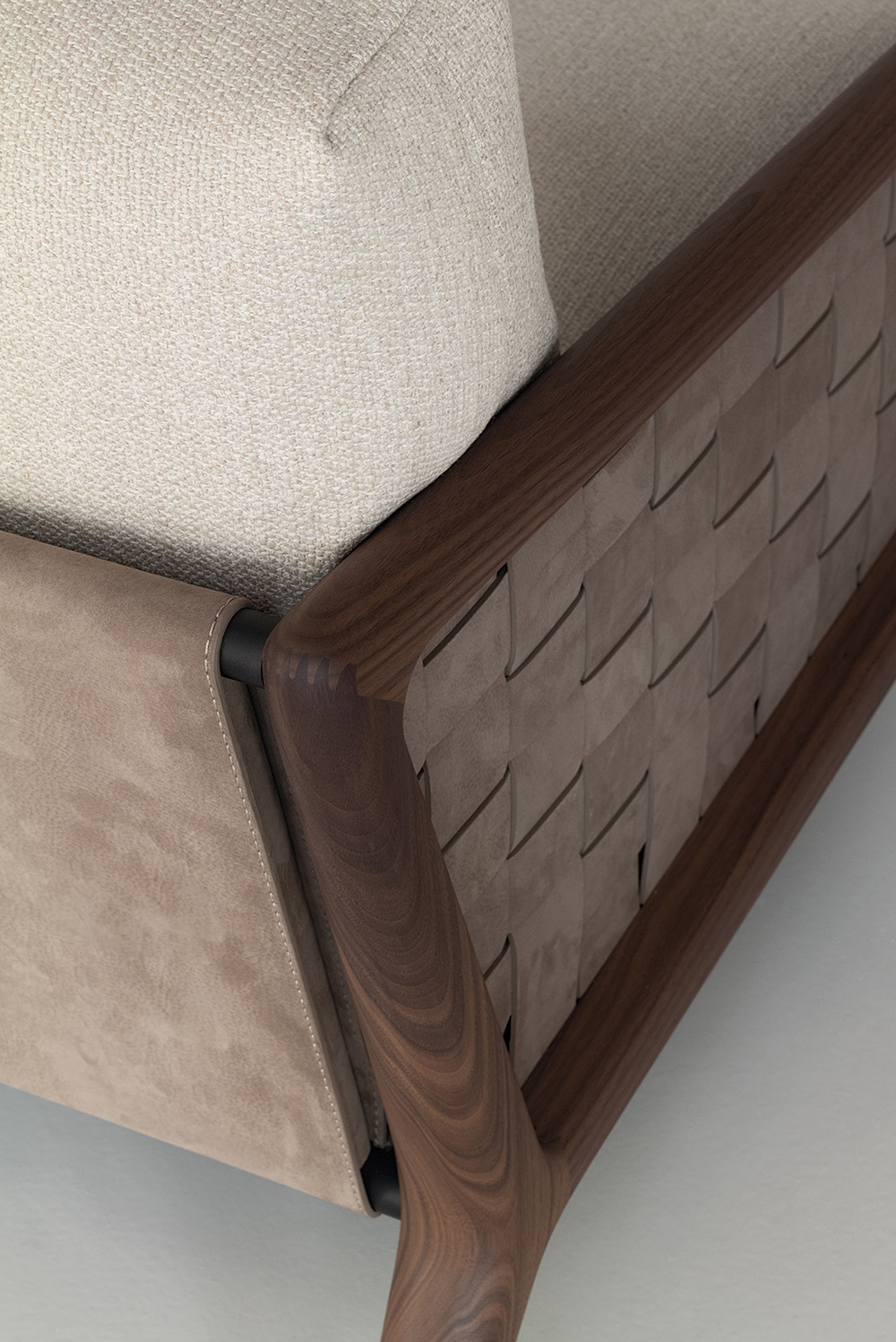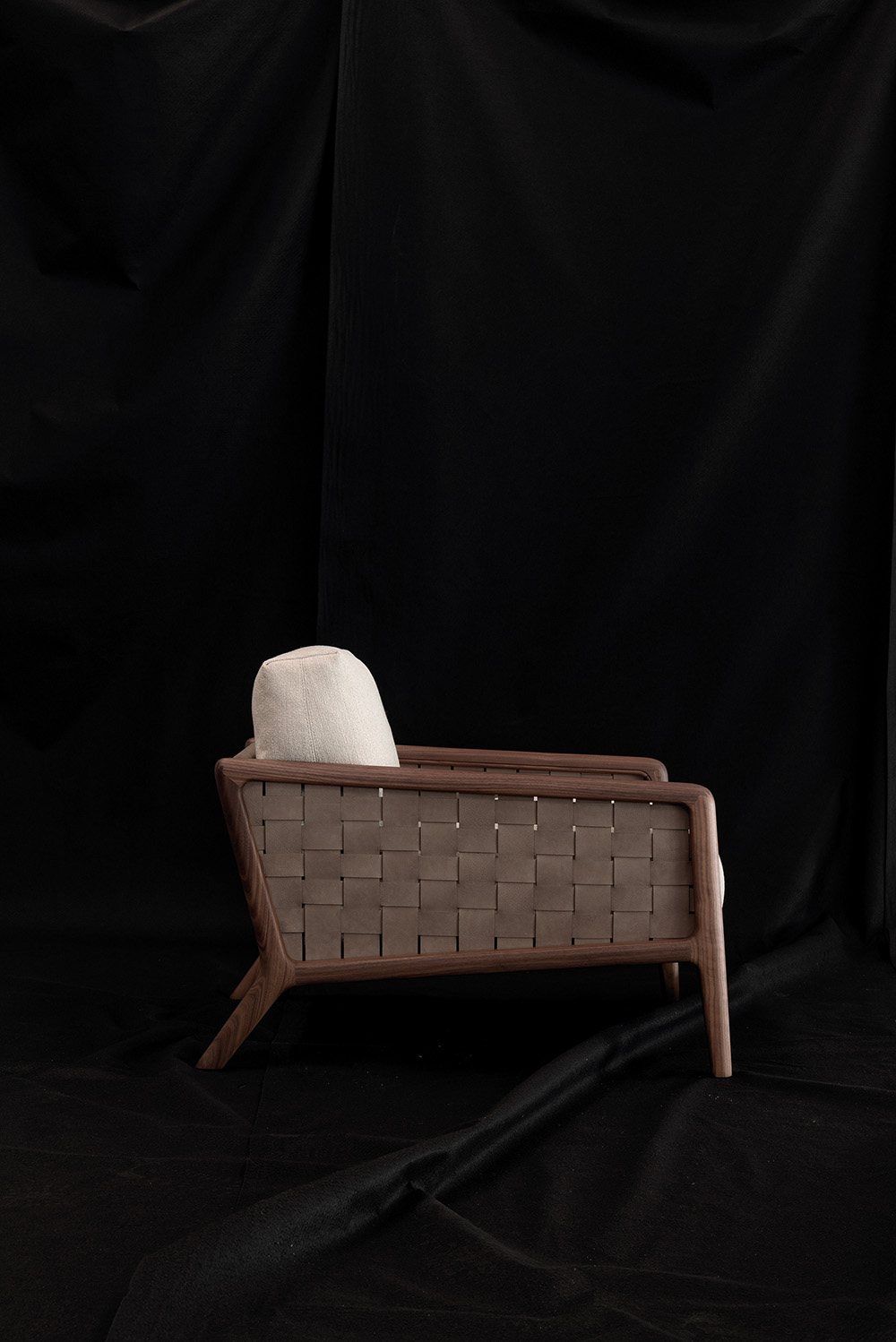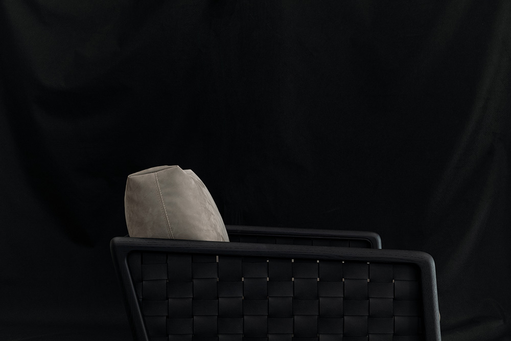 MOTIFS ENDLESSLY REPEATING THEMSELVES, WEAVES WITH NO FORESEEABLE CLOSURE. IOLE HOLDS IDEAS, AS THE HAND CARESSES EACH CARVING ON THE LEATHER,  LIKE RIPPLES ON WATER. MOTIVI CHE SI RIPETONO ALL’INFINITO, INTRECCI DI CUI NON SI CONOSCE L’ESITO. IOLE OSPITA I PENSIERI, MENTRE LA MANO SCORRE TRA GLI INTAGLI DI UNA SUPERFICIE DI PELLE, INCRESPATA COME LA SUPERFICIE DELL’ACQUA.