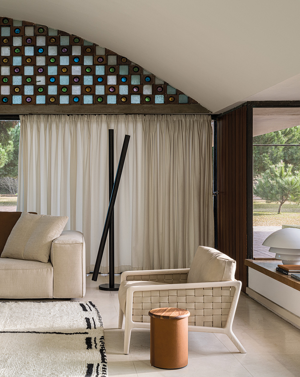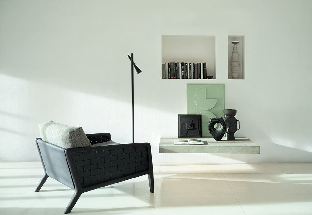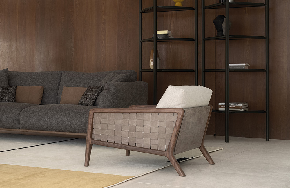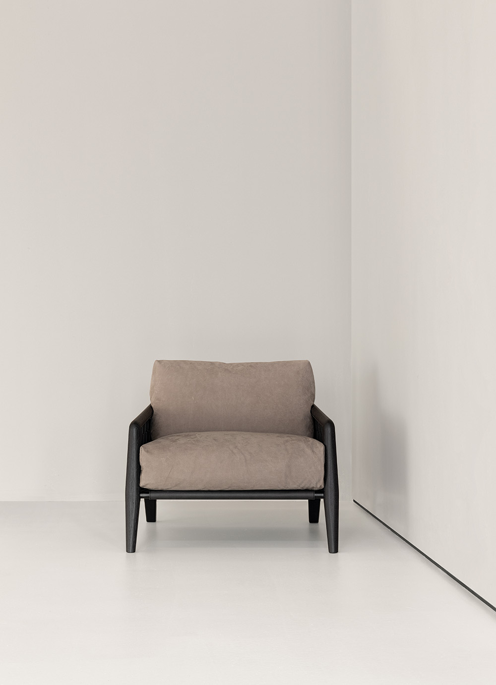 MOTIFS ENDLESSLY REPEATING THEMSELVES, WEAVES WITH NO FORESEEABLE CLOSURE. IOLE HOLDS IDEAS, AS THE HAND CARESSES EACH CARVING ON THE LEATHER,  LIKE RIPPLES ON WATER. MOTIVI CHE SI RIPETONO ALL’INFINITO, INTRECCI DI CUI NON SI CONOSCE L’ESITO. IOLE OSPITA I PENSIERI, MENTRE LA MANO SCORRE TRA GLI INTAGLI DI UNA SUPERFICIE DI PELLE, INCRESPATA COME LA SUPERFICIE DELL’ACQUA.