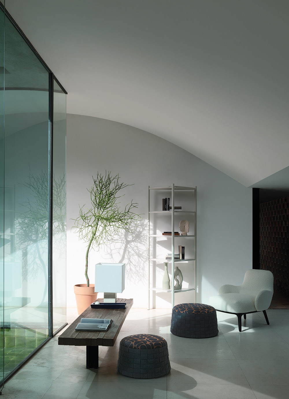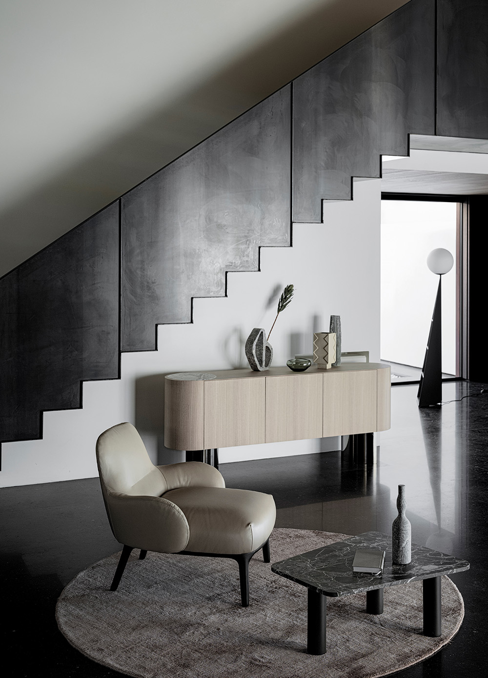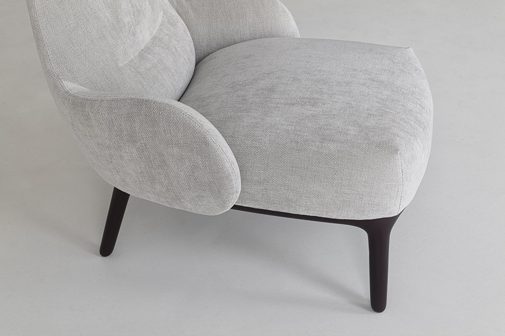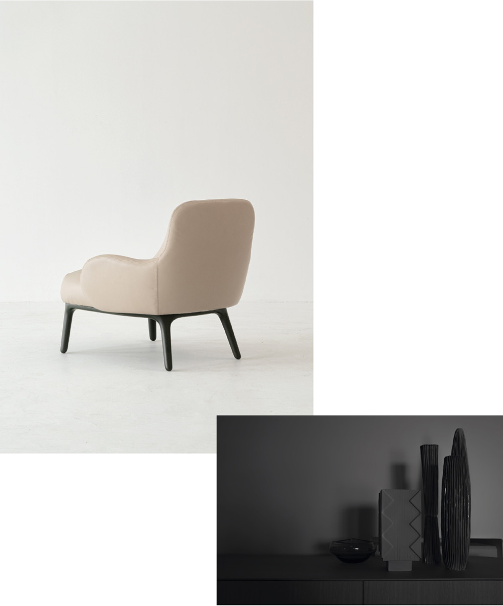 WOODY PLAYS WITH THE TYPICAL SHAPES OF AN ARMCHAIR BY BORROWING THE PURPOSE OF A CHAISE LONGUE, ENHANCING COMFORT IN EVERY DETAIL. ONE CAN PERCEIVE ALL THE VARIOUS MATERIALS, ALMOST LIKE IN A WELL EXECUTED RECIPE.  WOODY GIOCA CON LE FORME DELLA POLTRONA REGALANDOLE L’INTENZIONE DI UNA CHAISE LONGUE, RIUSCENDO AD ESALTARE IL RELAX IN OGNI DETTAGLIO. I DIVERSI MATERIALI SI PERCEPISCONO TUTTI, COME IN UNA RICETTA BEN ESEGUITA.
