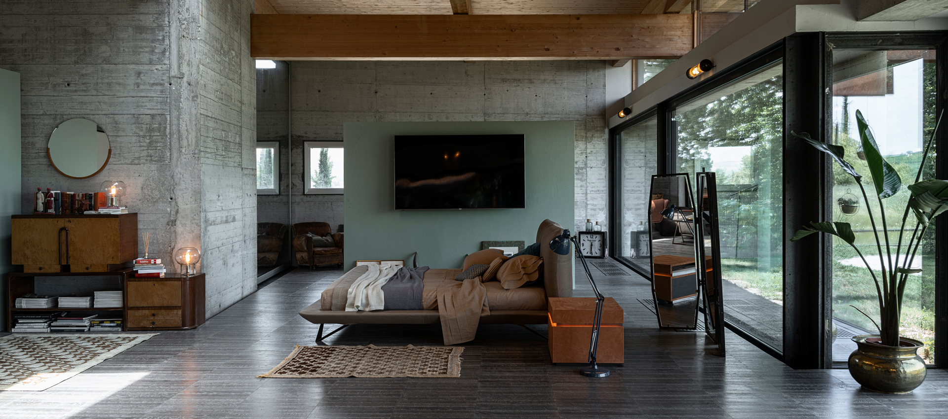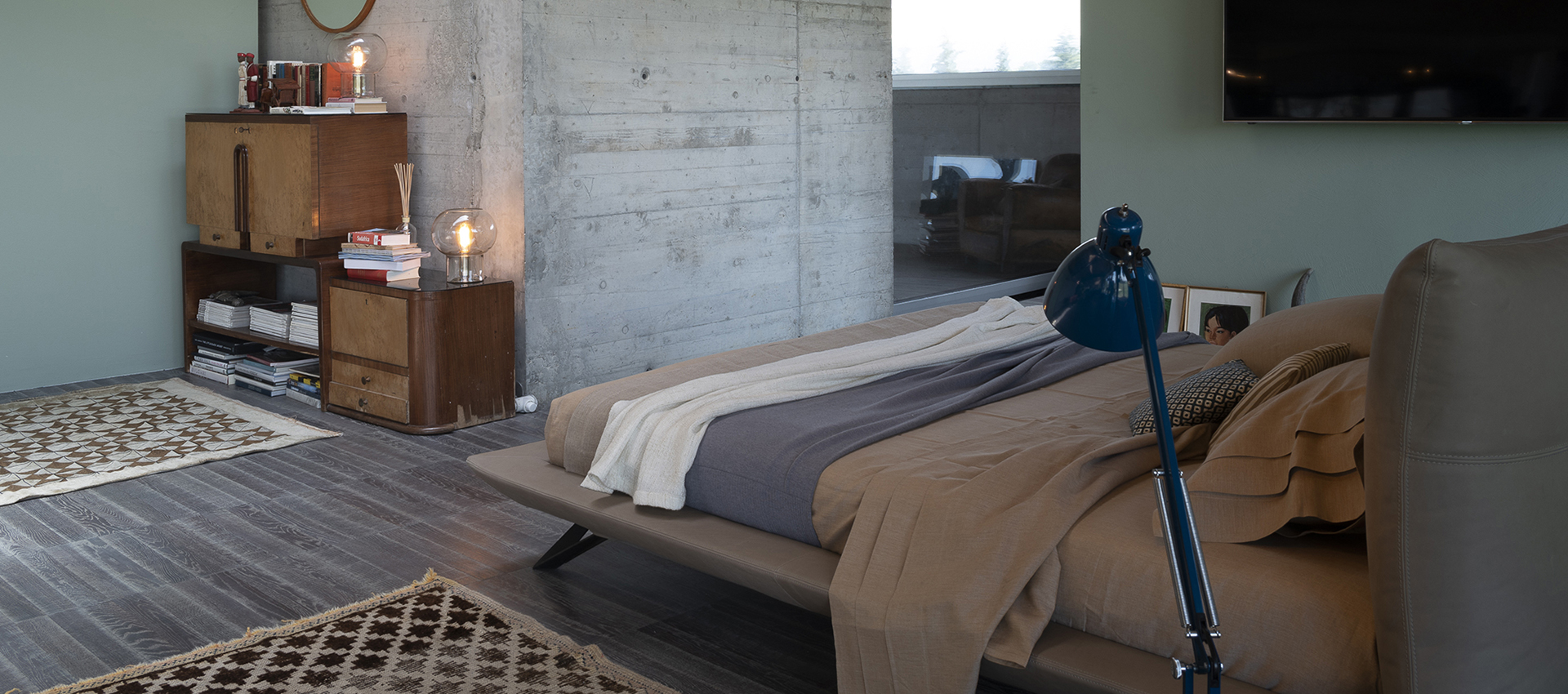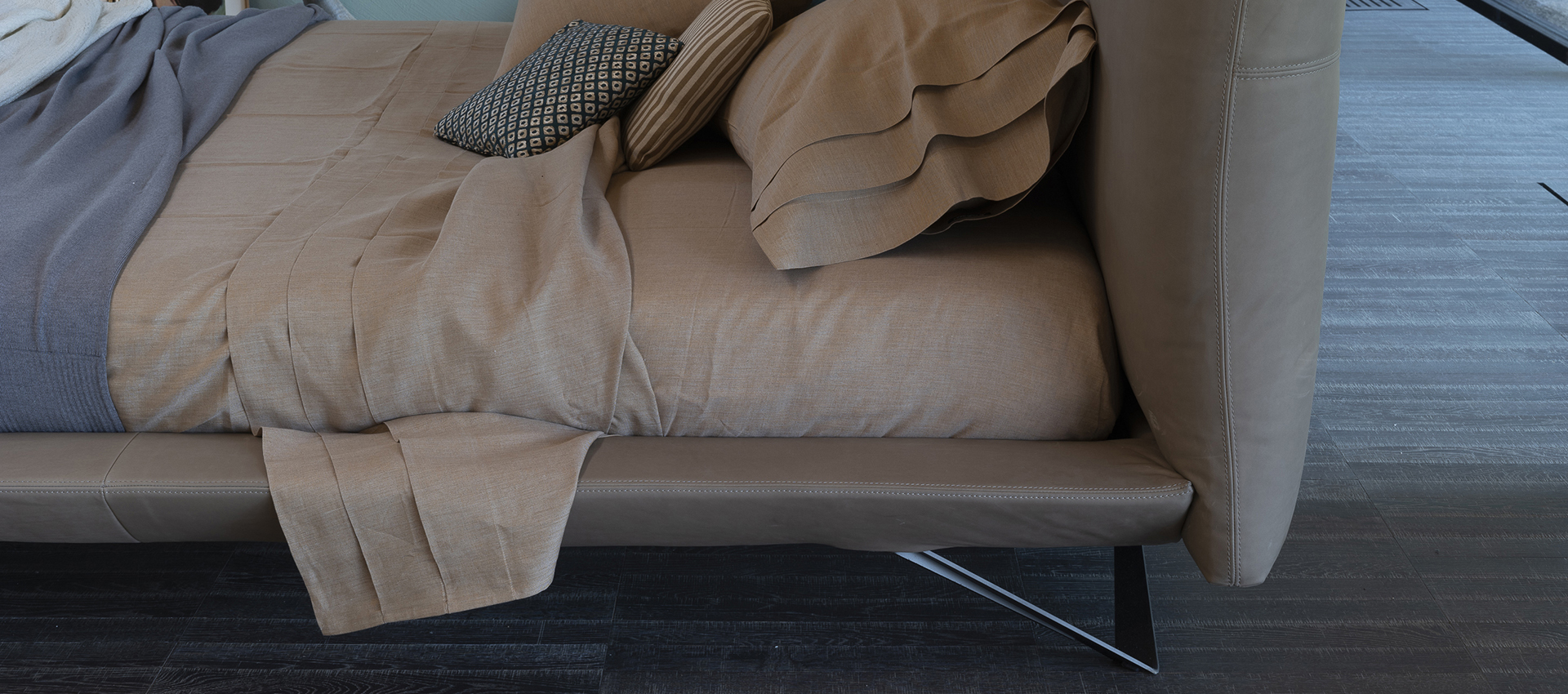 expanded, leather upholstery. The feet are available in anthracite painted metal