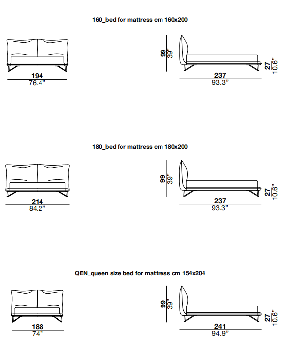 bed with headboard and bed frame with metal structure, polyurethane padding
