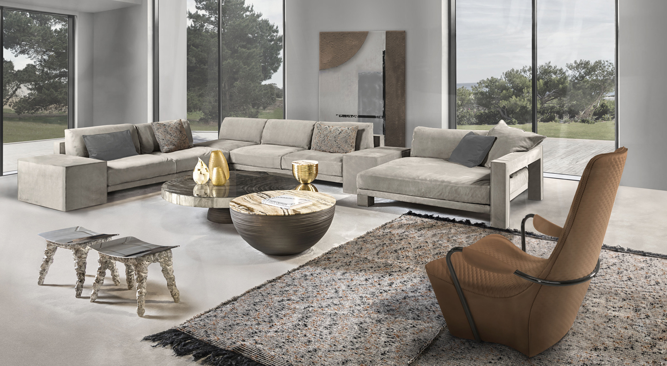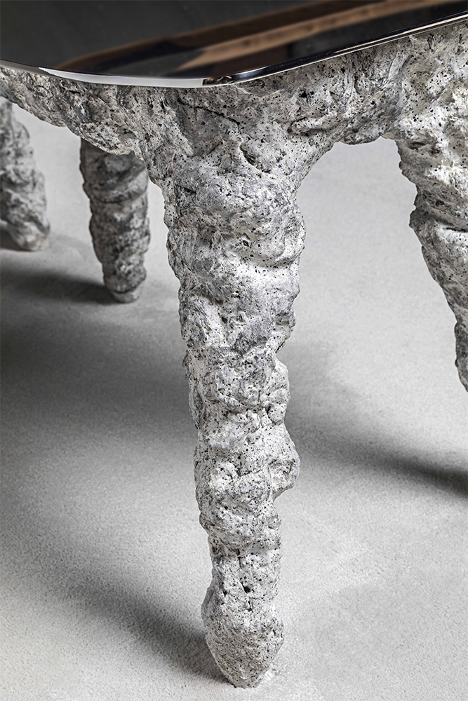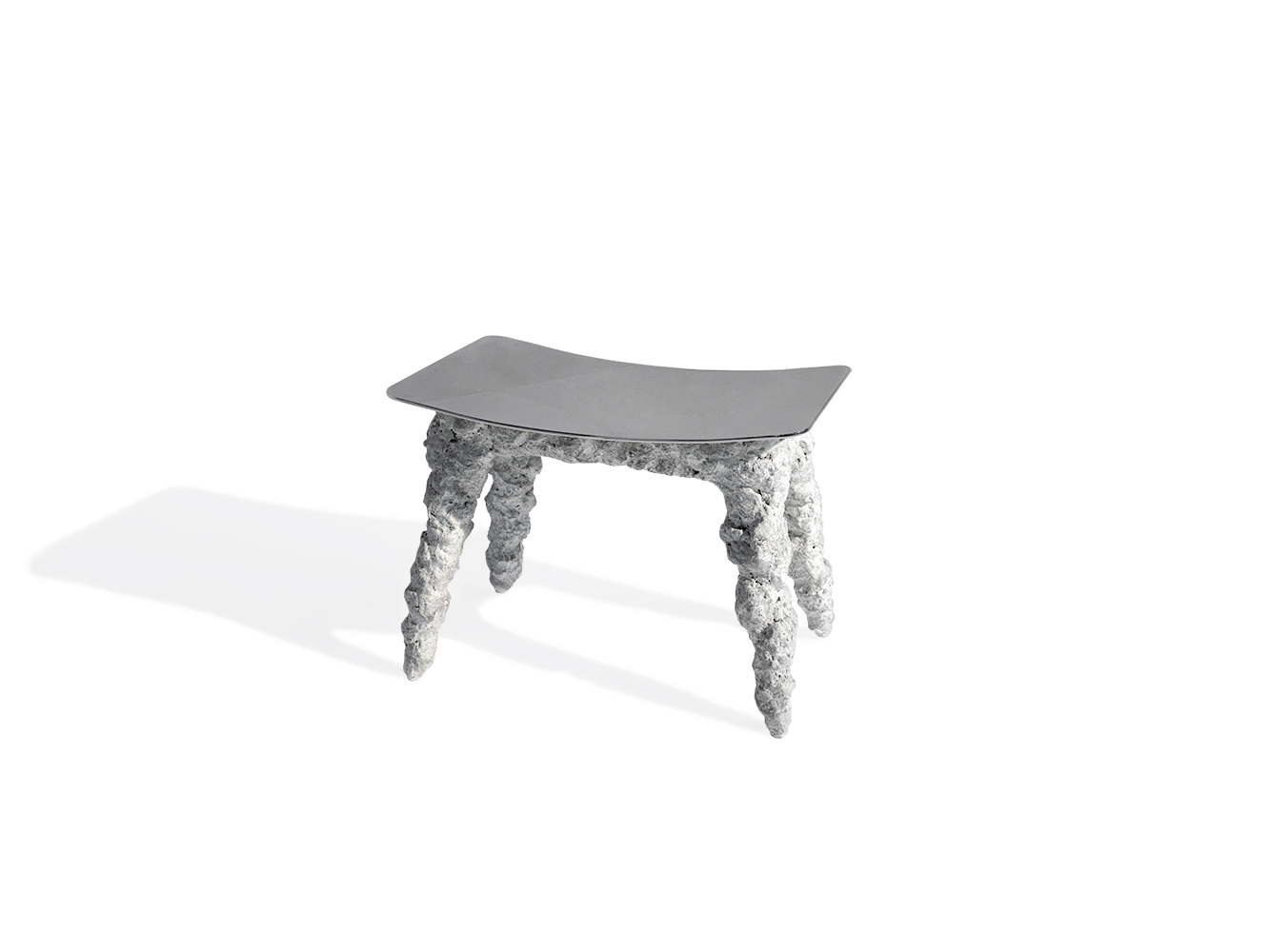 More than a pouf, Blade is an artwork. For the first time the continuous search for new materials led to a new application for concrete, a non-conventional artist’s choice that gave form and shape to an object worthy of being in a contemporary art gallery. The concrete is molded, entirely by hand, thus giving the legs an amorphous design. The uneven surface elegantly contrasts the gold or glossy chrome metal finish of the seat. Blade is a complement intended for consumers always looking for unique pieces.
