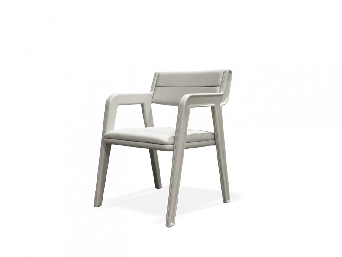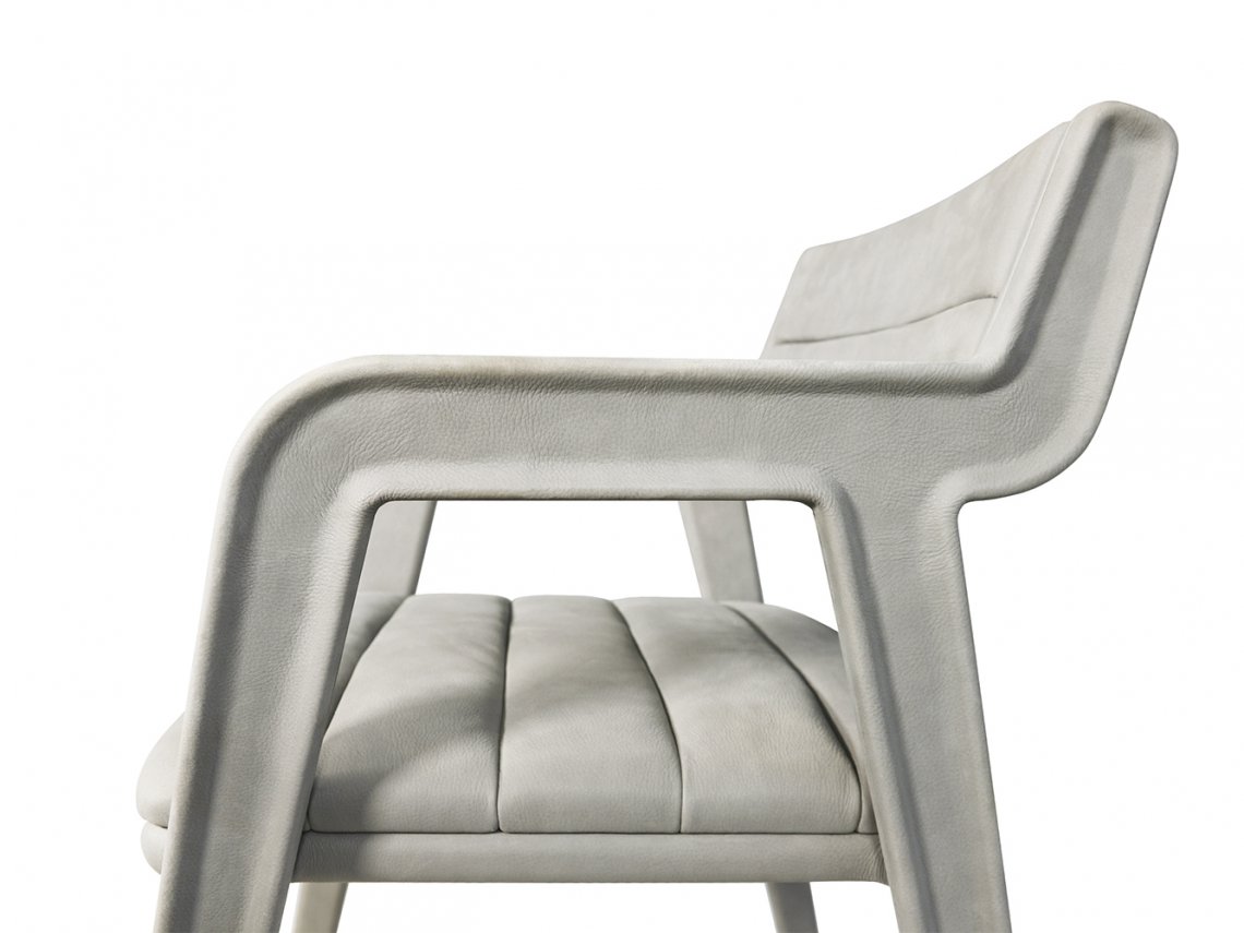 Chair Evelyn, available only in leather, has an appealing design where the backside and the seat are supported by an harmonious double structure very complicated to be realized. The refinement of this chair is further enhanced by the absence of stitchings on the sides, as effect of great tailoring skills of the artisans able to handle complex three-dimensional shapes. Available in different fashionable colours, it can be suitable for modern and sophisticated dining areas.