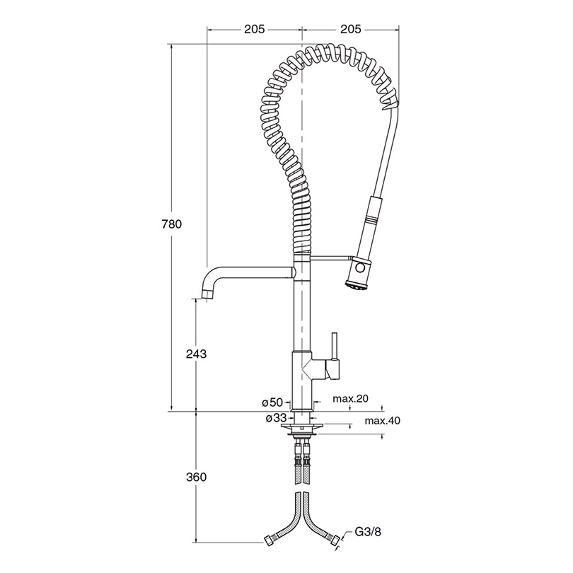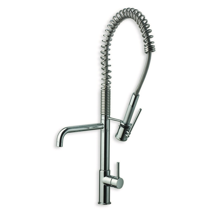 Single-control kitchen mixer, swivel spout, single-hole deck-mounted, with right-hand side mechanical mixing and detachable “spring loaded” mini showerhead, H. 780 mm