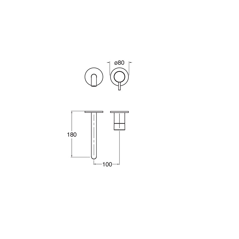 Regular single-control wall-mount external set for Washbasin, with manual mixing. Spout length 180 mm. For completion with recessed part CRICS200 (RH) / CRICS201 (LH)