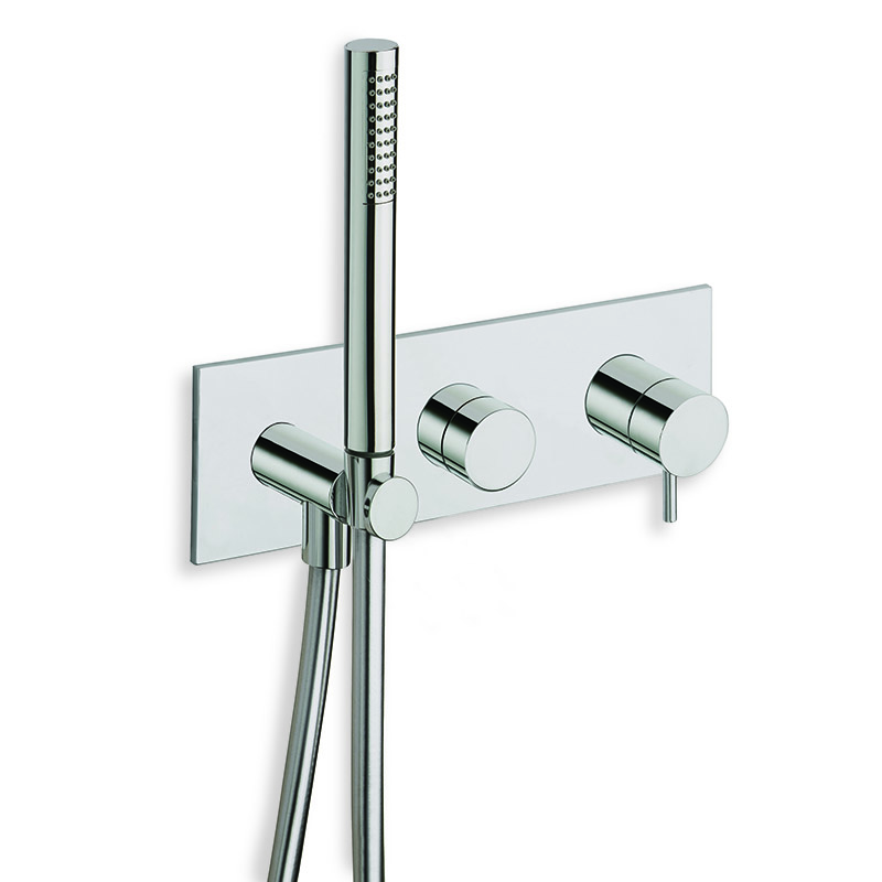 Single-control wall-mounted external set for shower/bathtub, metal plate, with mechanical mixing, diverter with 2 outlets, fixed support, water outlet, anti-scale mini showerhead and long-life hose ****. For completion with recessed part CRICS100 (RH) / C