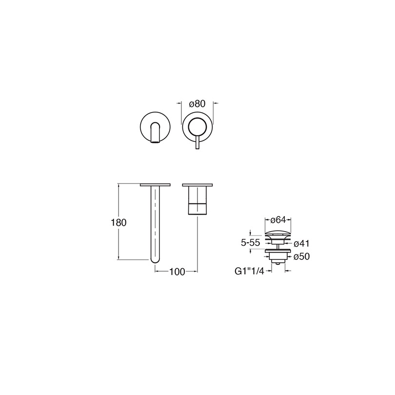 Regular single-control wall-mount external set for Washbasin, with manual mixing. Spout length 180 mm. For completion with recessed part CRICS200 (RH) / CRICS201 (LH)