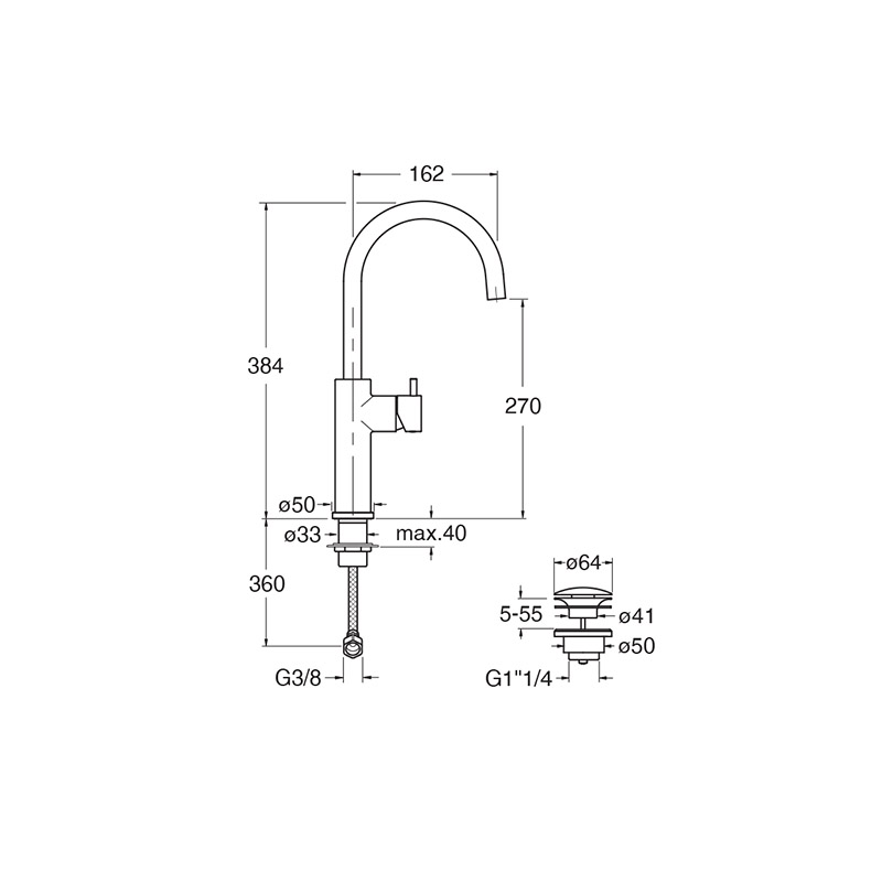 Single-control single-hole deck-mounted Medium Washbasin mixer, with mechanical side mixing and 1" 1/4 U&D* drain