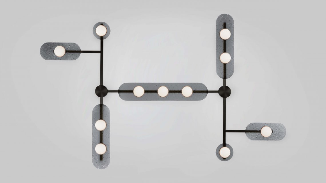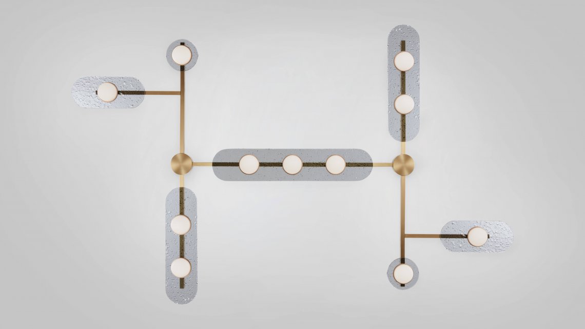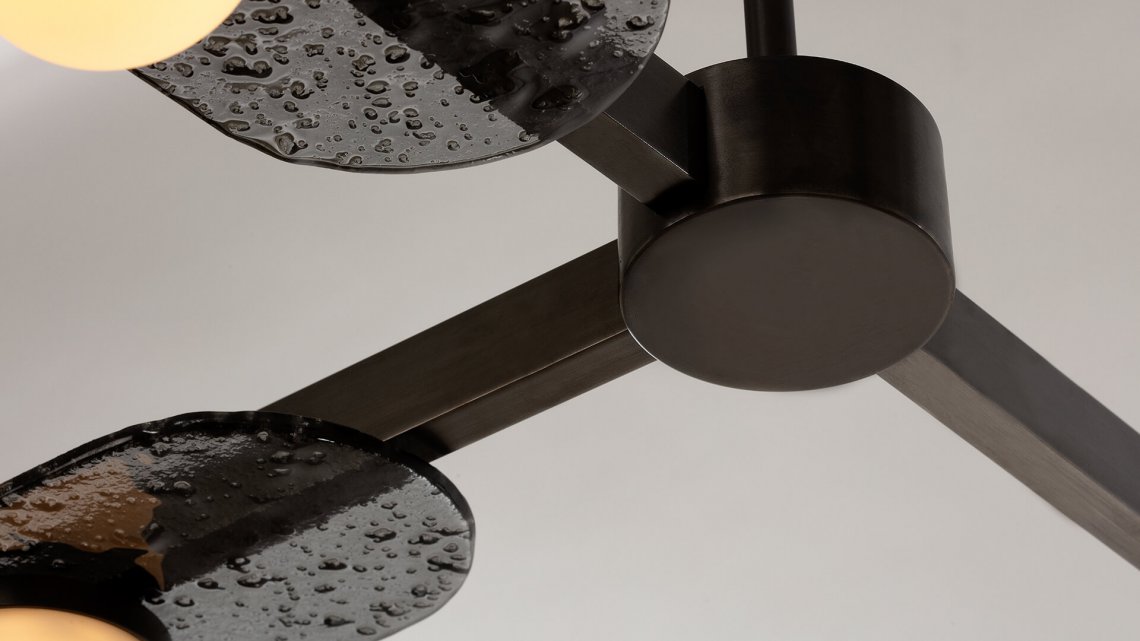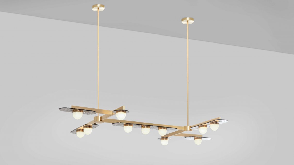 Created for CTO Lighting by Italian designer Federico Peri, MODULO is a collection of chandelier, pendant and wall lights distinguished by its modular form, arranged in linear configurations creating versatile lighting sculptures. Combining functionality with artisanal skill, the design focuses on geometric forms, connected in compositions of modules. The glowing domes are spaced in a linear pattern, allowing the light to reflect along the transparent, elongated glass disc and metal frame.