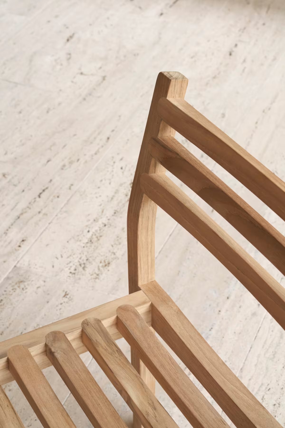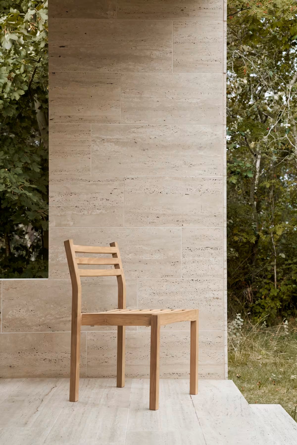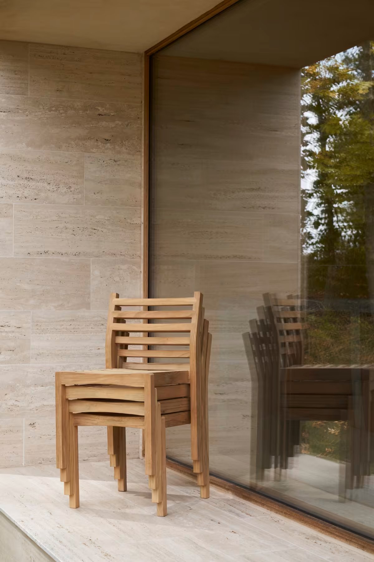 The AH501 Outdoor Dining Chair was designed by Alfred Homann in 2022 as part of the AH Outdoor series, characterized by strict lines elegantly combined with soft, rounded details. The chair can be combined with the square or oblong dining table and other furniture from the series of outdoor furniture. The chair is made of FSC?-certified teak, is stackable and is also available with armrests. Cushions are sold separately.