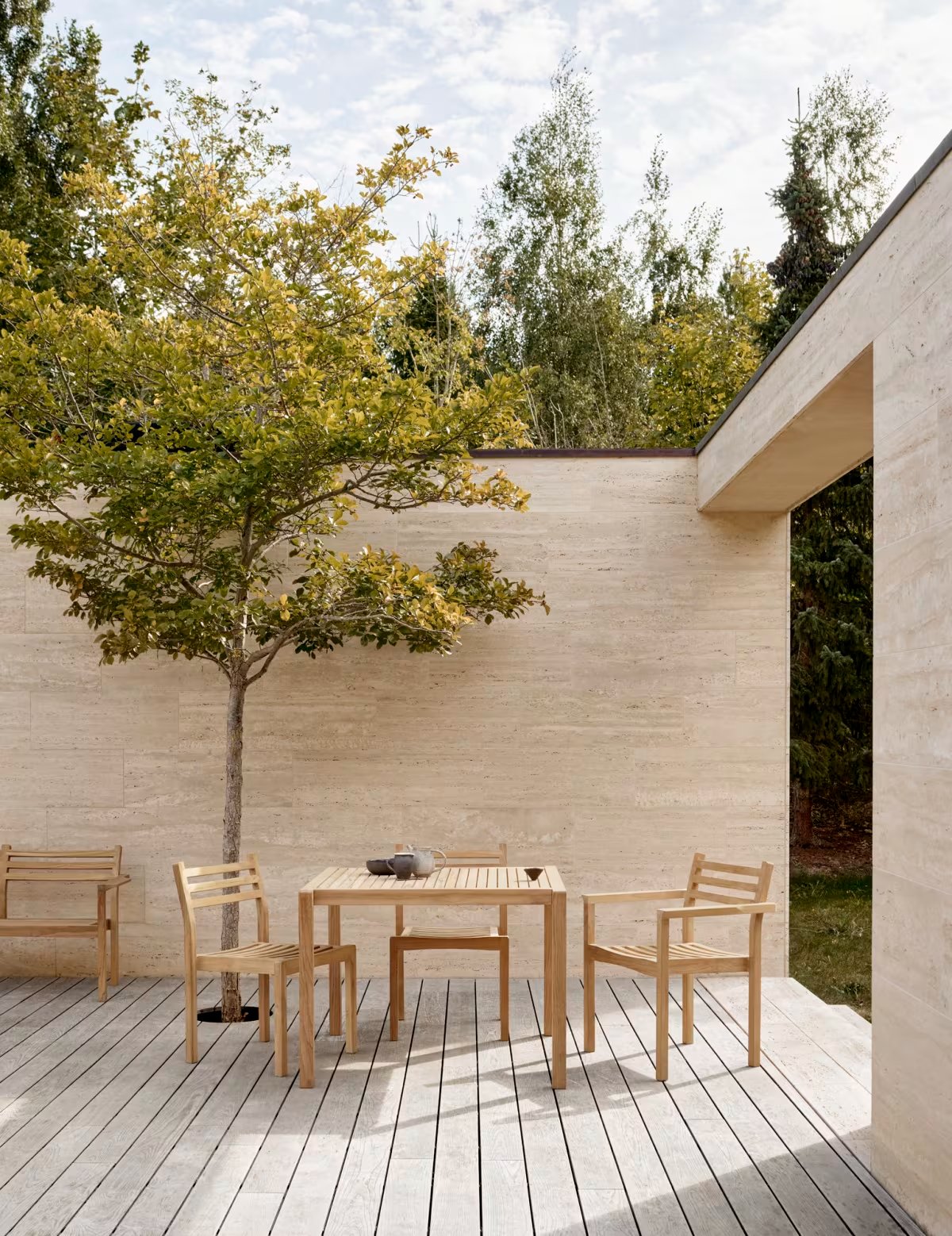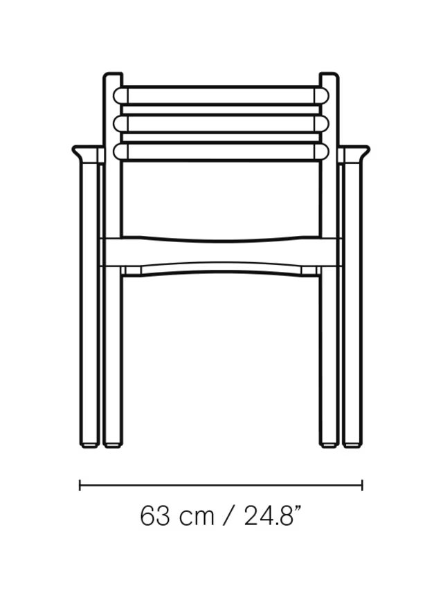 The AH502 Outdoor Dining Chair was designed by Alfred Homann in 2022 as part of the AH Outdoor series, characterized by strict lines elegantly combined with soft, rounded details. With slightly inclined armrests, seat and back, the chair offers high comfort. It can be combined with one of the dining tables from the series of outdoor furniture. The chair is made of FSC?-certified teak, is stackable and is also available without armrests. Cushions sold separately.