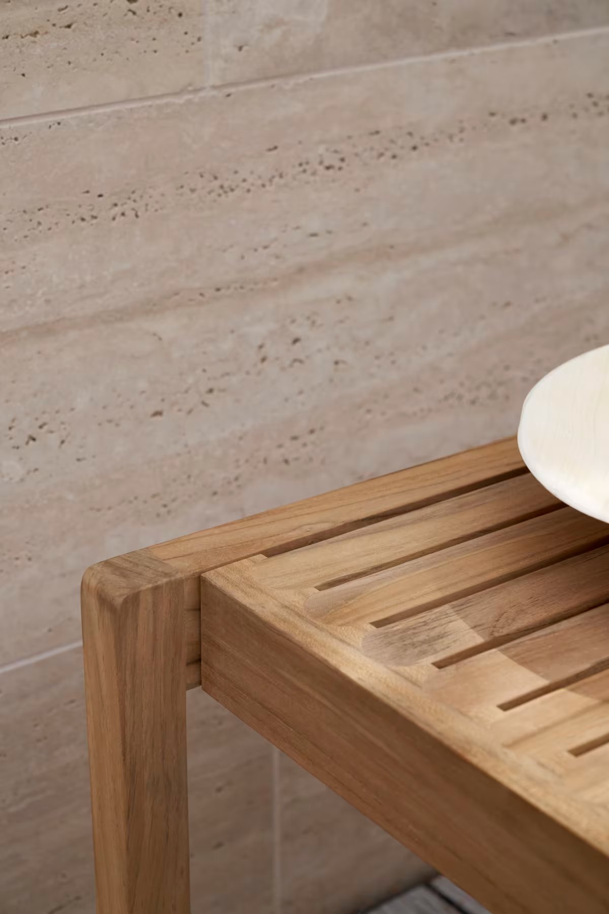 The AH911 Outdoor Side table was designed by Alfred Homann in 2022 as part of the AH Outdoor series. With strict lines elegantly combined with soft, rounded details, the table has simplicity and multiple functions - either as a seat or as a counter. The side table can also be combined with other outdoor furniture in the series to create an atmospheric outdoor environment. The table is made of FSC?-certified teak and the cushion is sold separately.