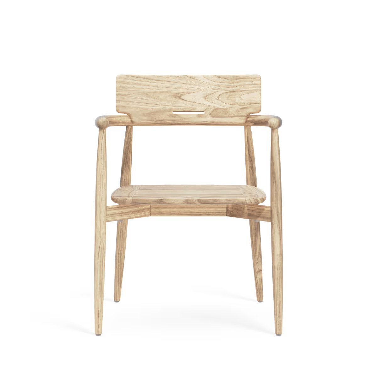 Designed by the design trio EOOS, the E008 Embrace Outdoor Dining Chair echoes the silhouette of the E005 Embrace Armchair. Created for supreme comfort outdoors, the chair is crafted from untreated teak that develops a unique patina over time. Designed to be used with or without its signature weather-resistant cushioned upholstery, the chair can also be stacked for convenience.?