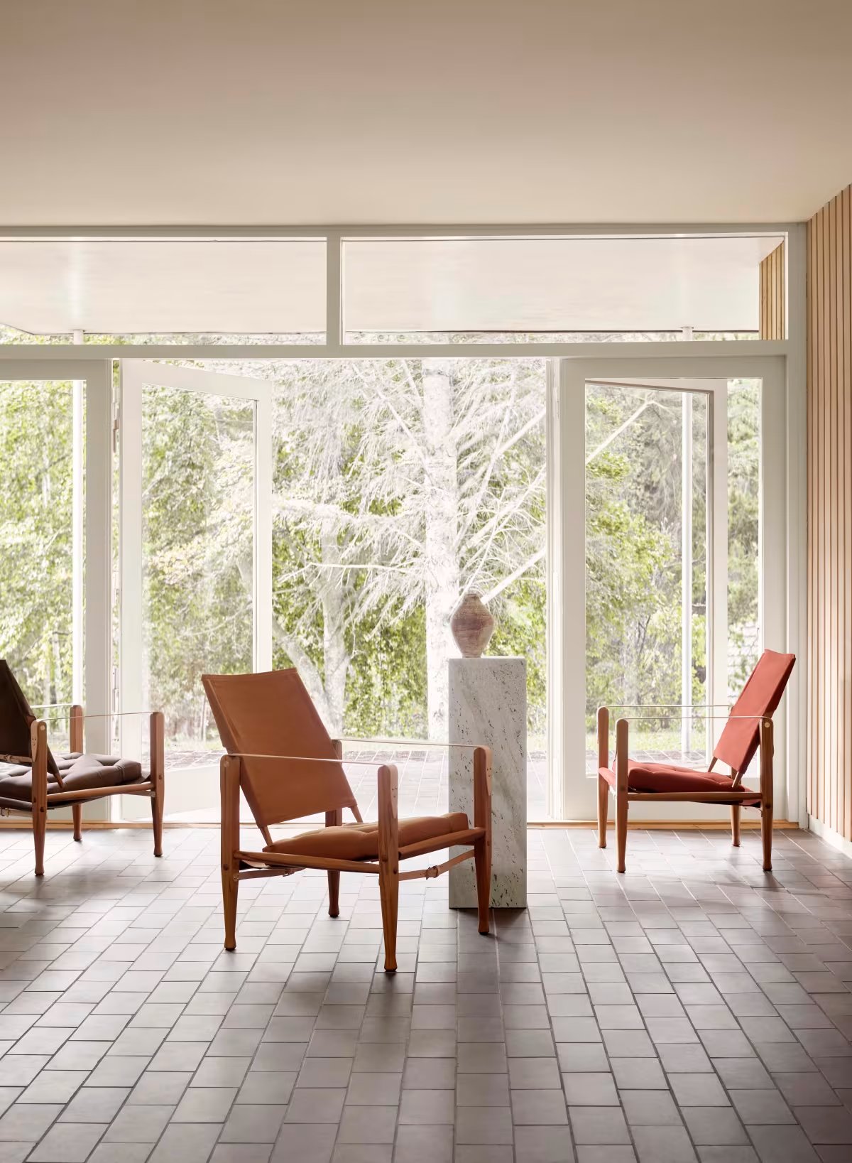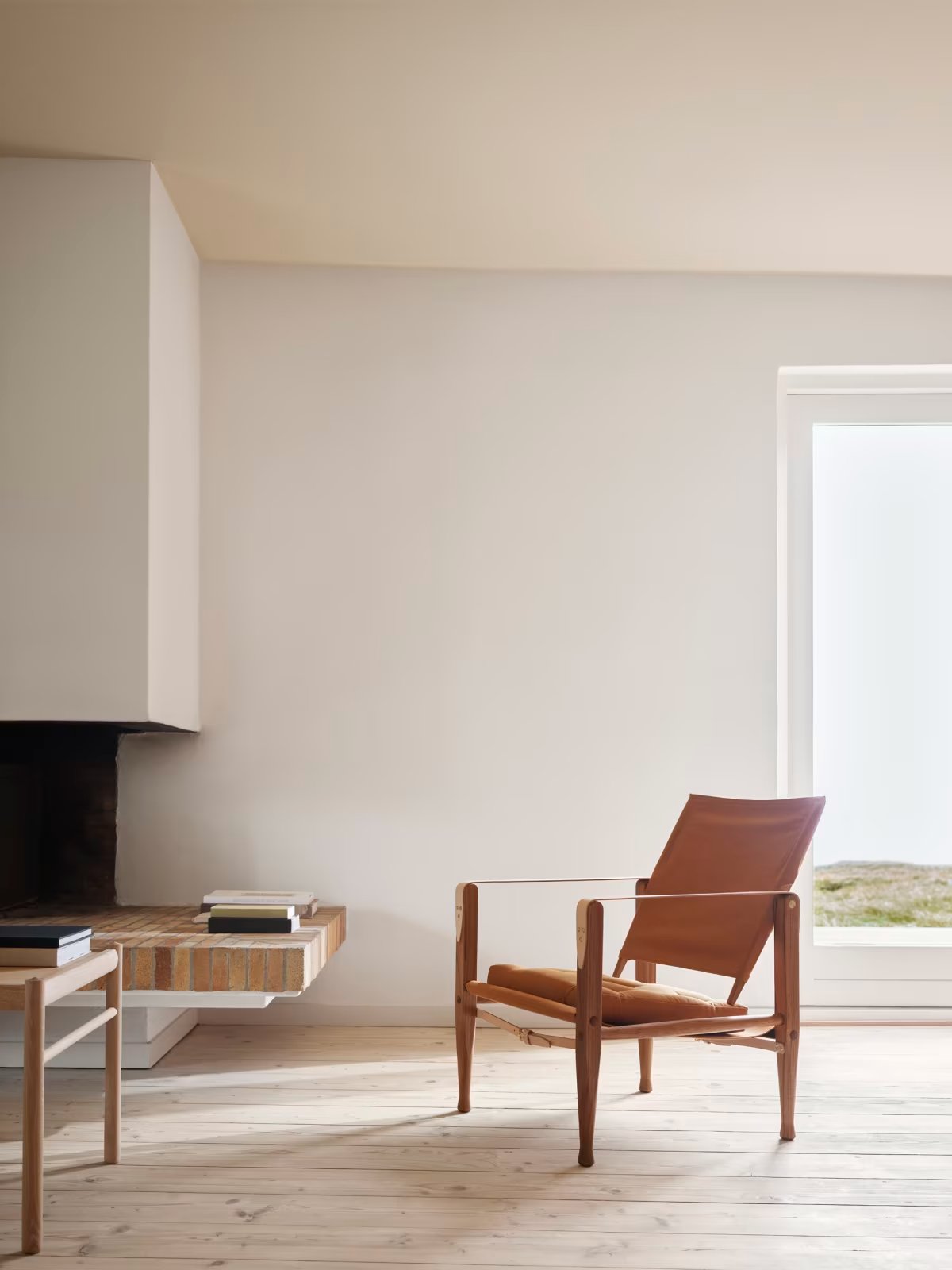 his special edition of the Safari Chair by Kaare Klint features a heavy canvas fabric available in three warm and earthy colours. Merged with soft saddle leather detailing and a vibrant oiled teak frame, this edition offers a new look to Klint’s masterpiece.