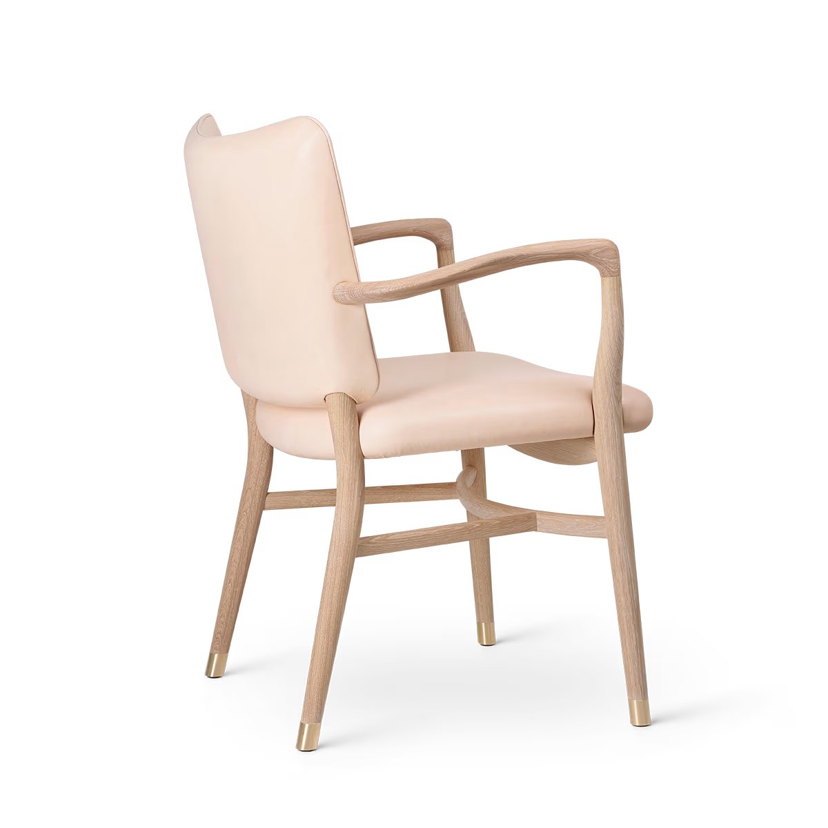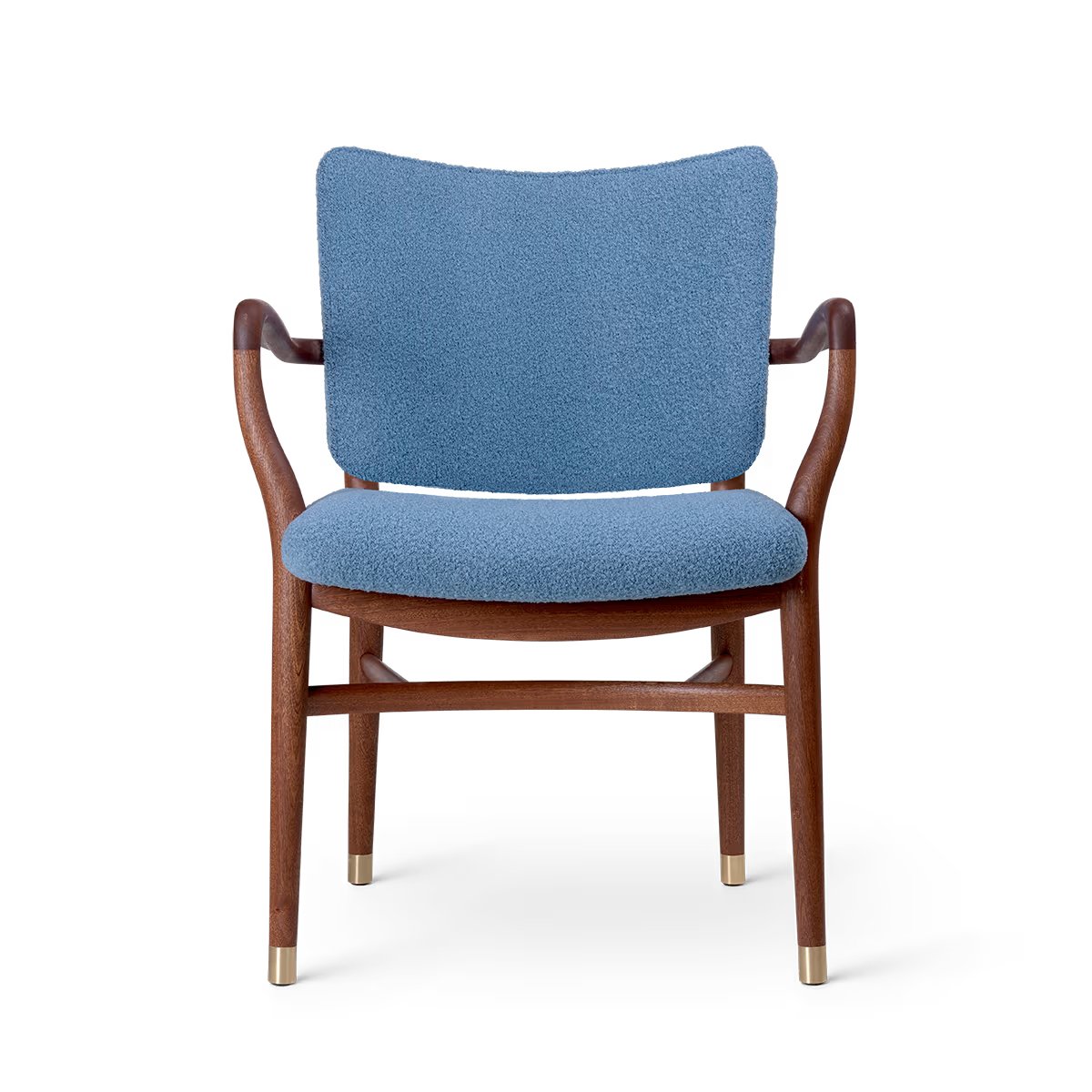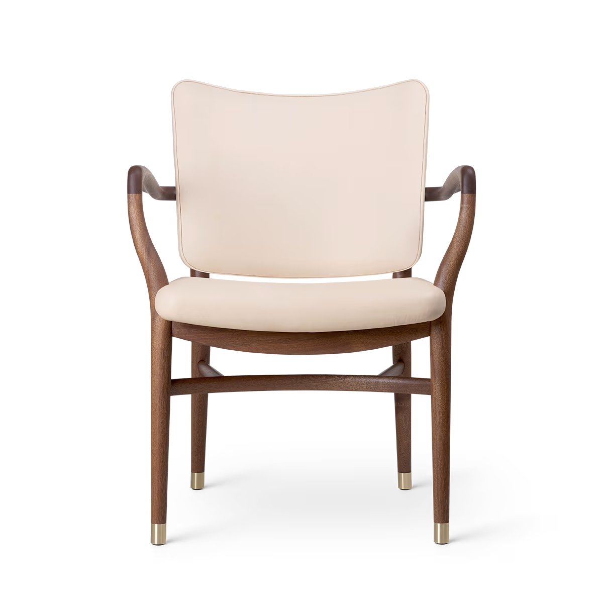 The VLA61 Monarch Chair was designed by Vilhelm Lauritzen in 1944, and only ten chairs were originally produced. The chair has a poetic design, functionalist details and an elegant interplay between soft upholstery and the carefully hand-polished frame. Available in several variants.