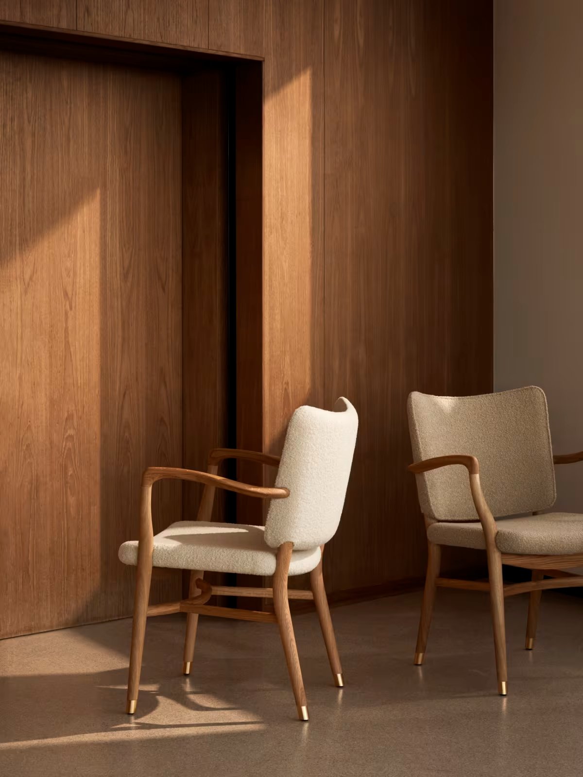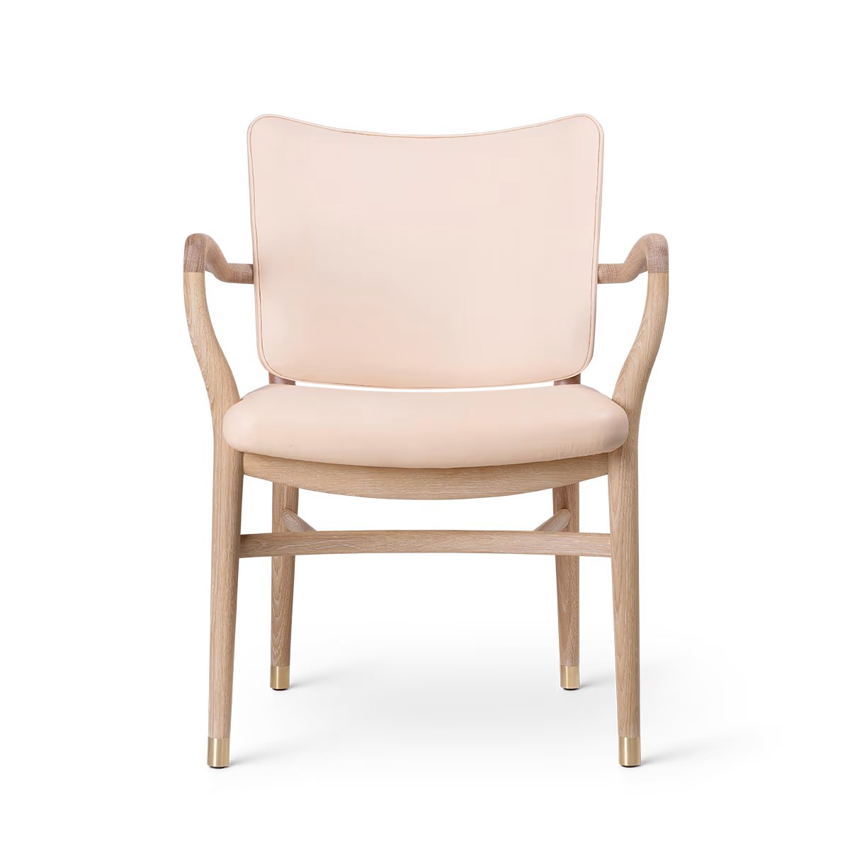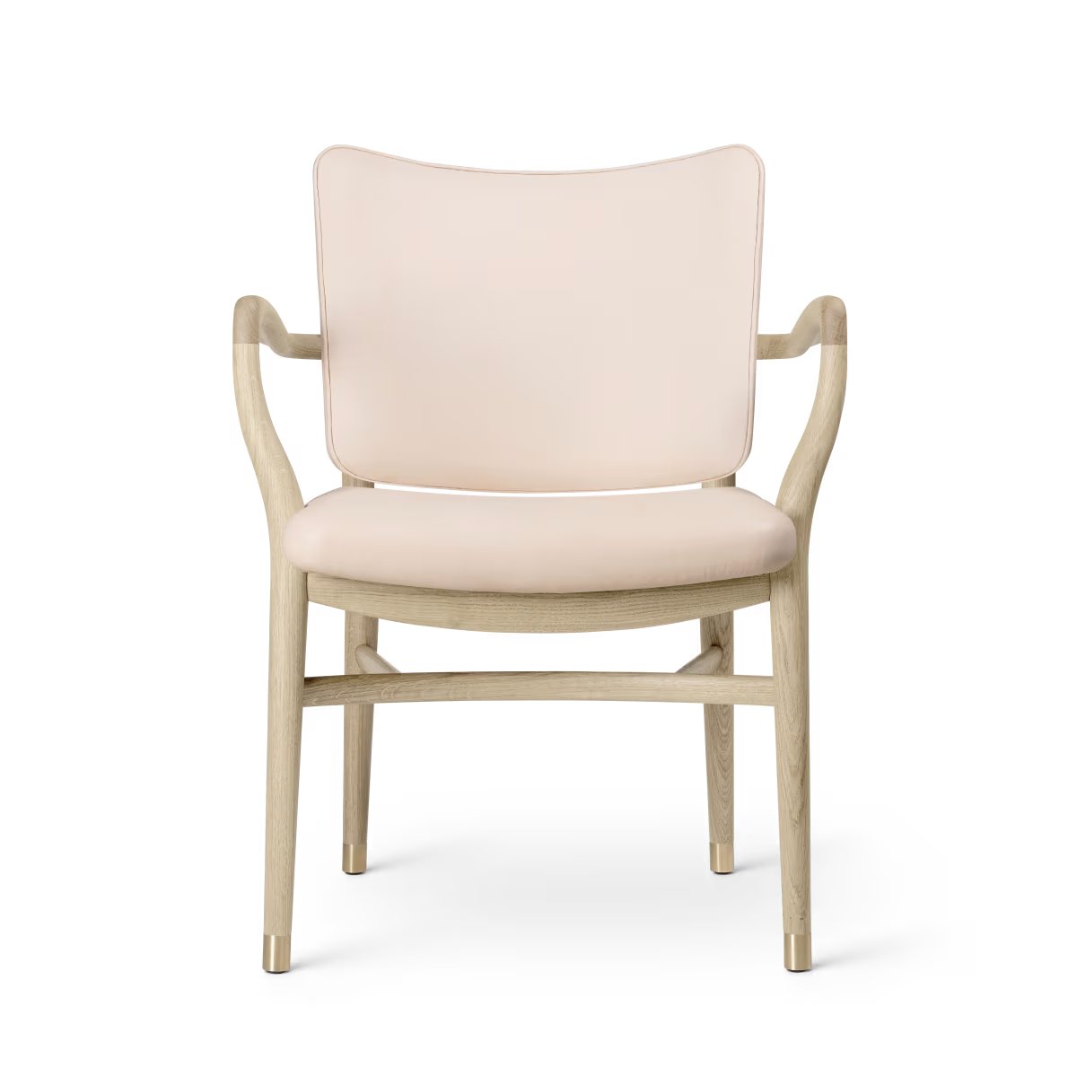The VLA61 Monarch Chair was designed by Vilhelm Lauritzen in 1944, and only ten chairs were originally produced. The chair has a poetic design, functionalist details and an elegant interplay between soft upholstery and the carefully hand-polished frame. Available in several variants.