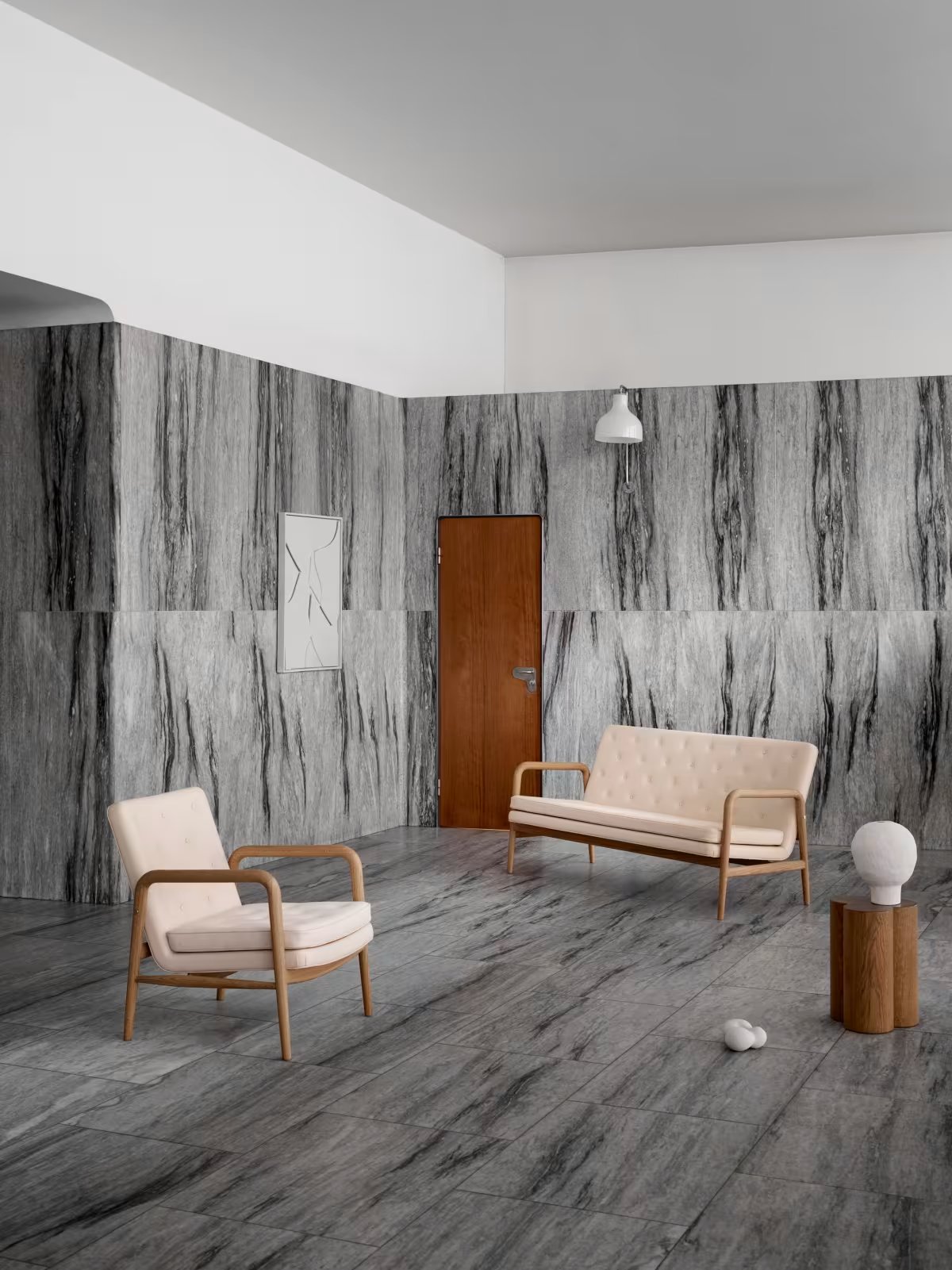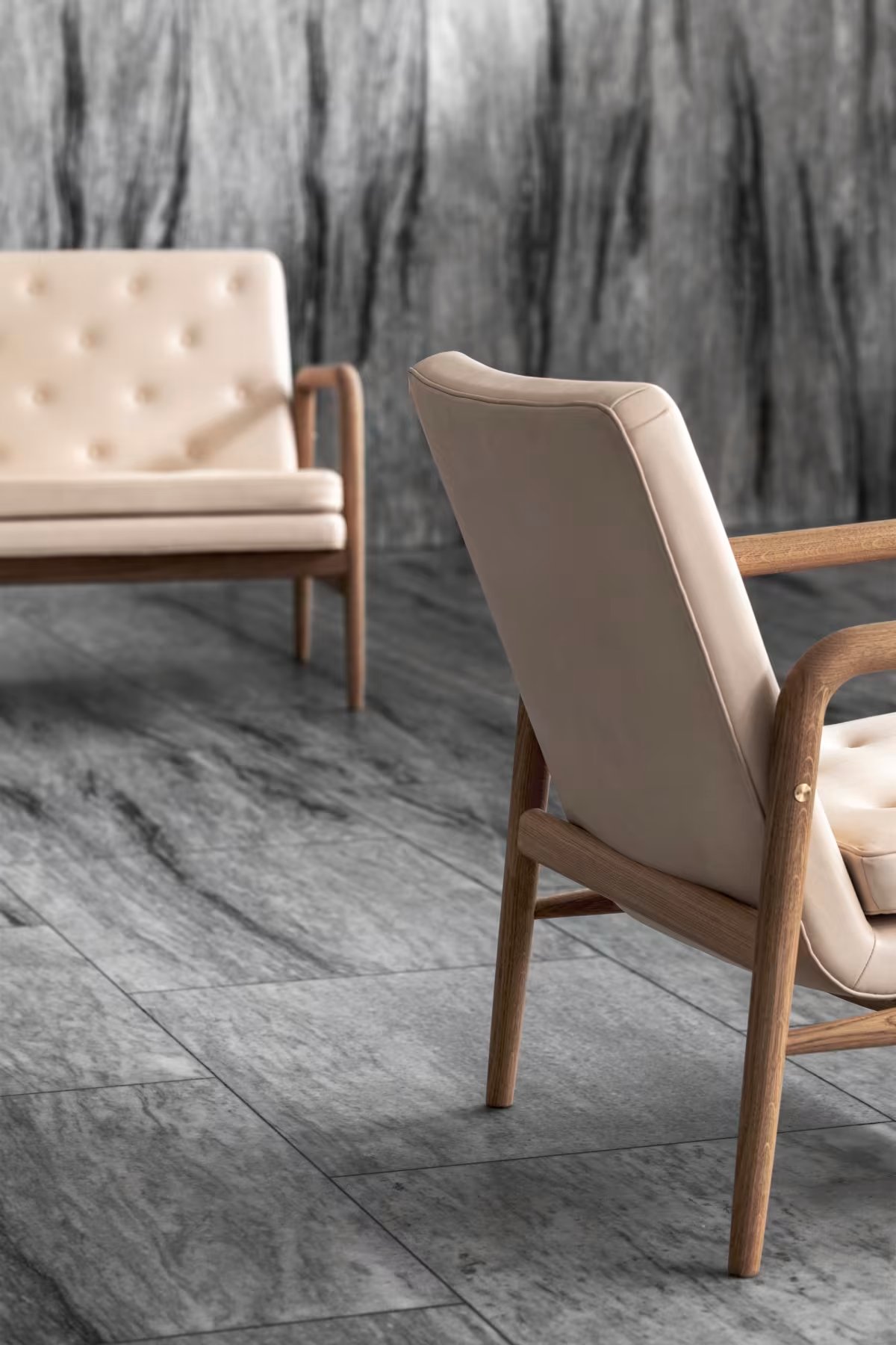 The Foyer Sofa is characterized by the interplay between wood and upholstery and the backrest has an almost floating appearance. Simple yet expressive, the iconic Foyer Sofa unites function with form. Foyer Series was exclusively created by Vilhelm Lauritzen for the Radiohuset in Copenhagen in 1945.