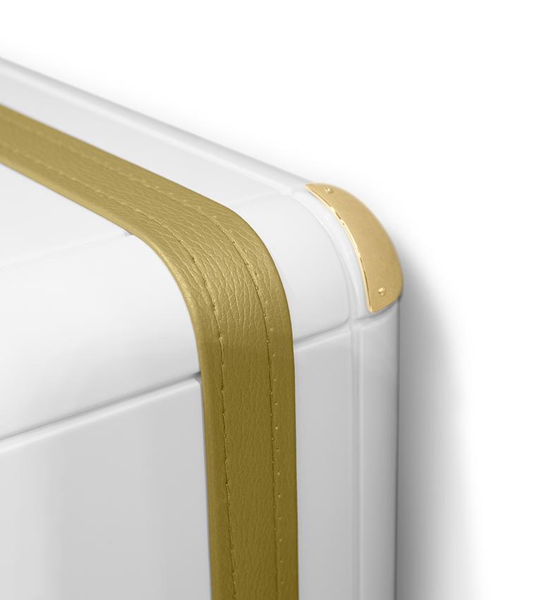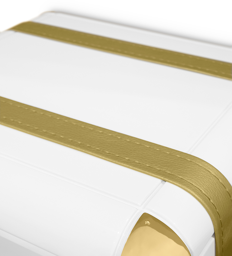 Lacquered In Glossy White, Metal Parts In Gold or Nickel Plated Finishing, Strips In Gold or Grey Synthetic Leather