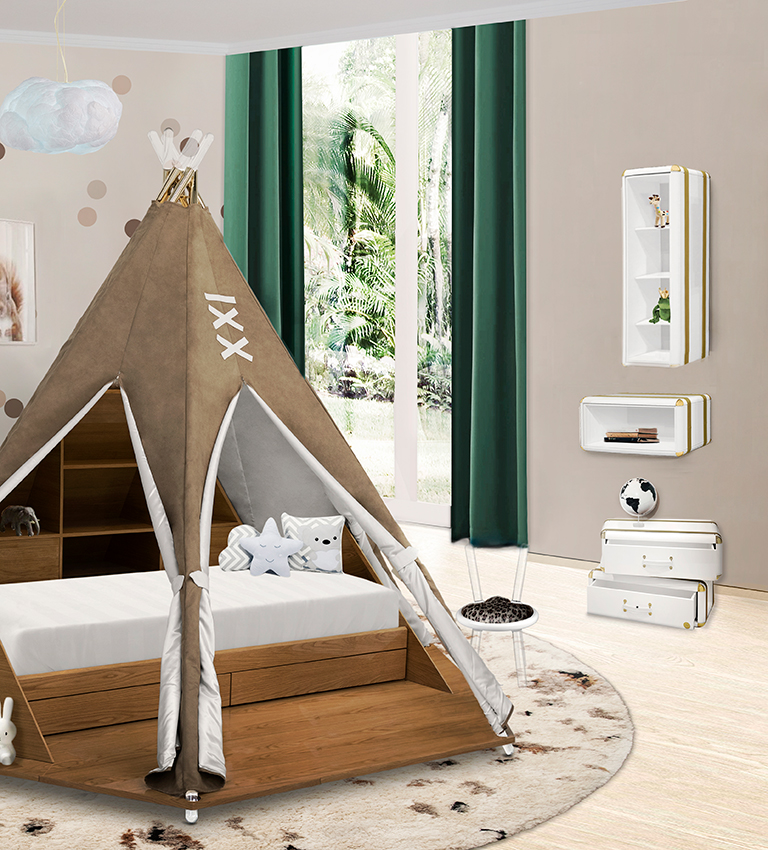 With a creative and playful design, inspired by vintage travel suitcases to reinforce the connection between children and exploring, to provide extra storage.