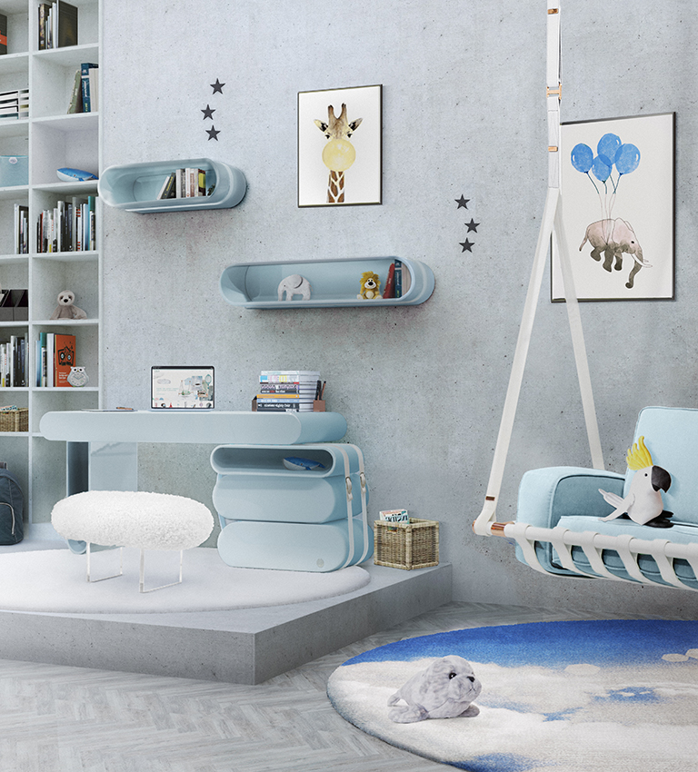 With a creative and their playful design, this Cloud Shelf aims to reinforce the connection between children and imagination. It features a great amount space that can store bed time stories, family frames or toys that are spreading across the floor.