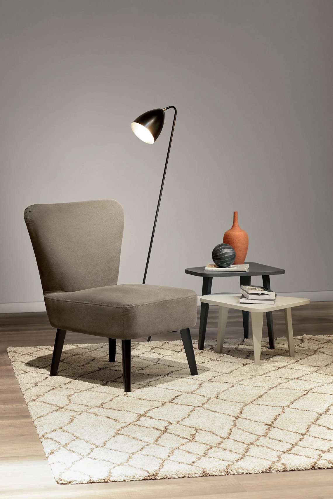 Margot s an armchair for confined spaces inspired by the cocktail ARMCHAIRs of the 1950s without armrests, ideal in the reading corner of a Modern living room, in the office and in the bedroom.