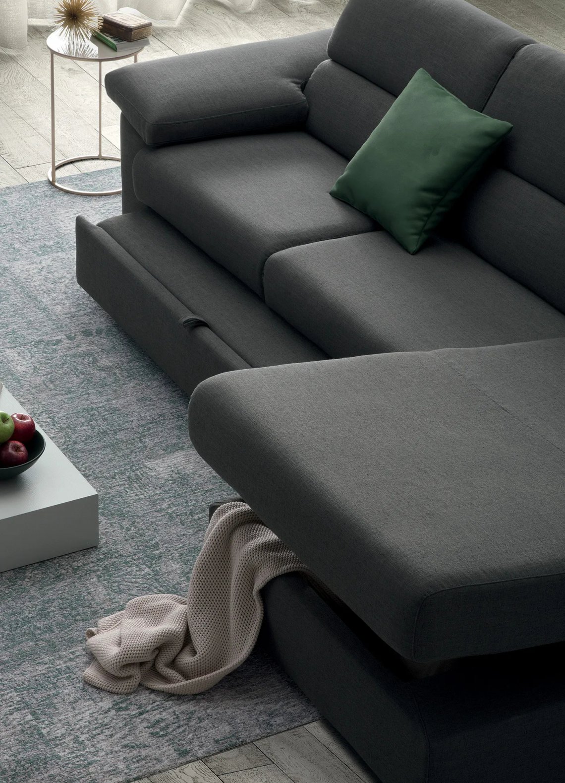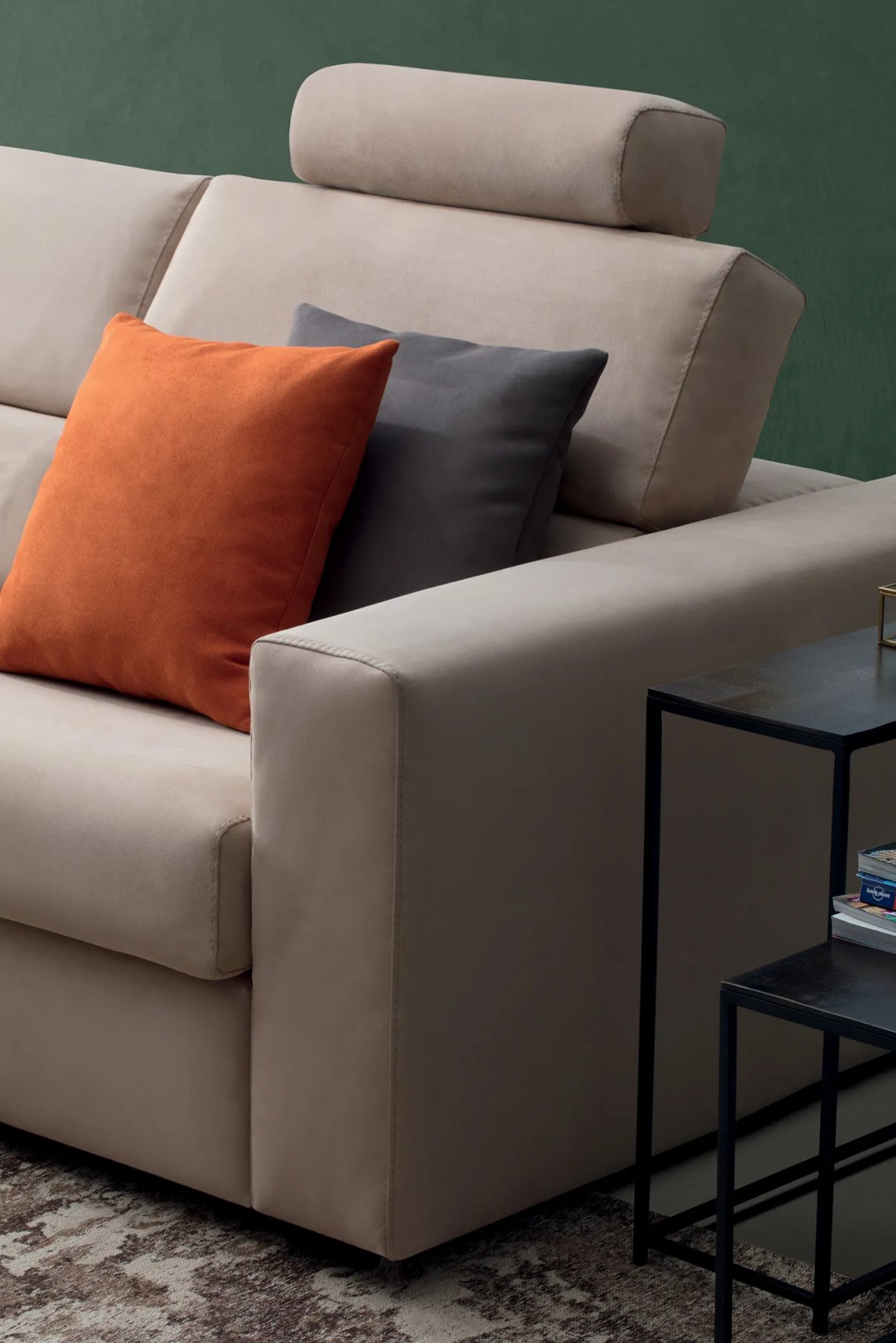 FUSION is a sofa created from the need to reconstruct everything, down to the smallest detail, tailored to the customer: in its different versions it is possible to choose every single component, from the lumbar support to the headrest, from the footrest to the armrest, and rebuild it from scratch. style that you prefer.
