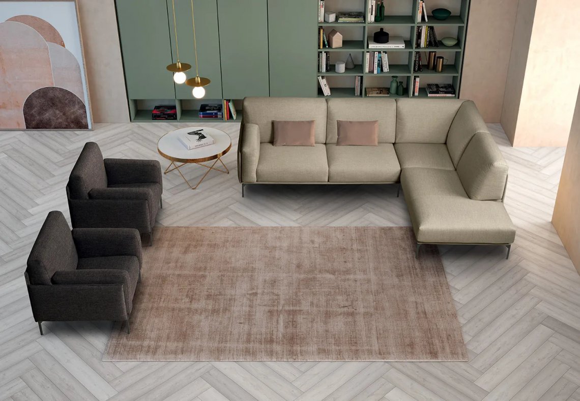In its stylistic canons we find a timeless elegance characterised by the versatility of the shapes: the different combinations of armrest and backrest possible, making every style choice unique.