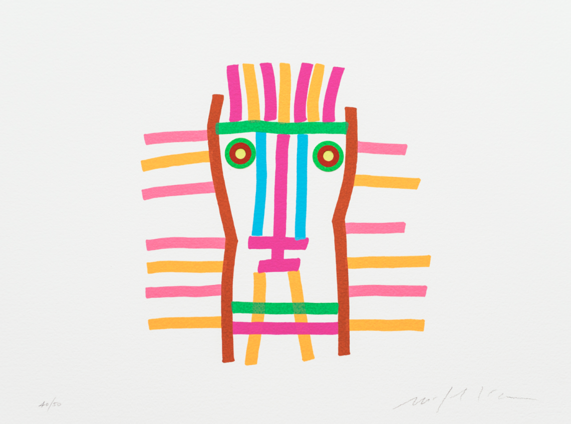 I volti, uno is a limited edition seven-colour silkscreen print. The series of prints entitled “I Volti” is inspired by the video “Giocosa Mente”, “a work for moving images” created by Paladino as a tribute Bruno Munari for the 100th anniversary of his birth. With simple, bright coloured marks and lively shapes that express both energy and emotion this print emits that sense of playful creativity that was typical of Munari’s work.