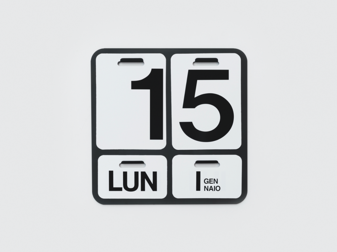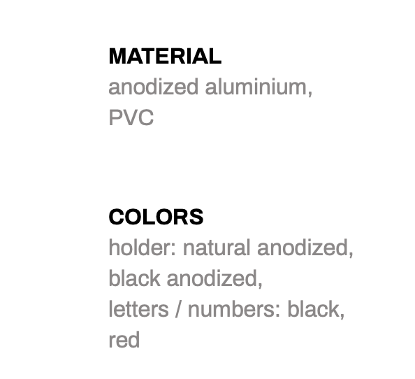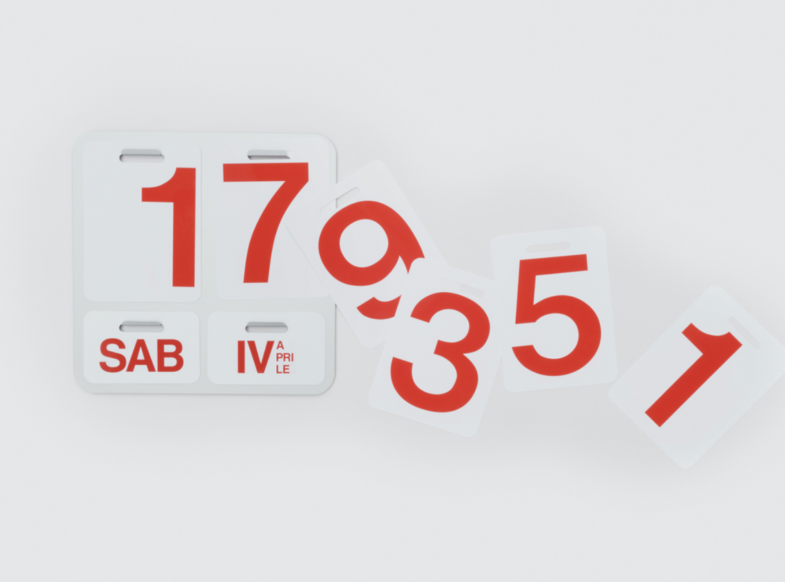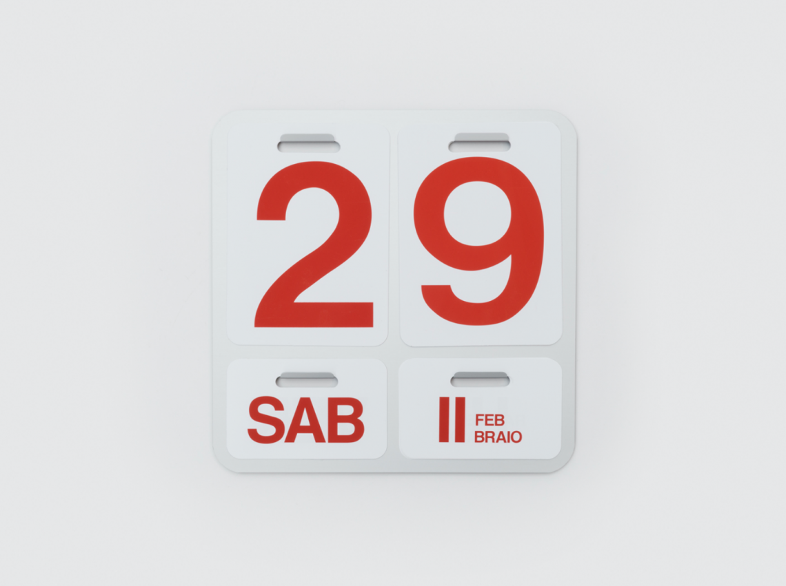 Formosa is a wall calendar with an aluminium back plate that supports the removable sheets of pvc that make up the date. The font used in the black and red version is Helvetica and the piece is one of the classic pieces of the collaboration between Mari and Danese Milano.
