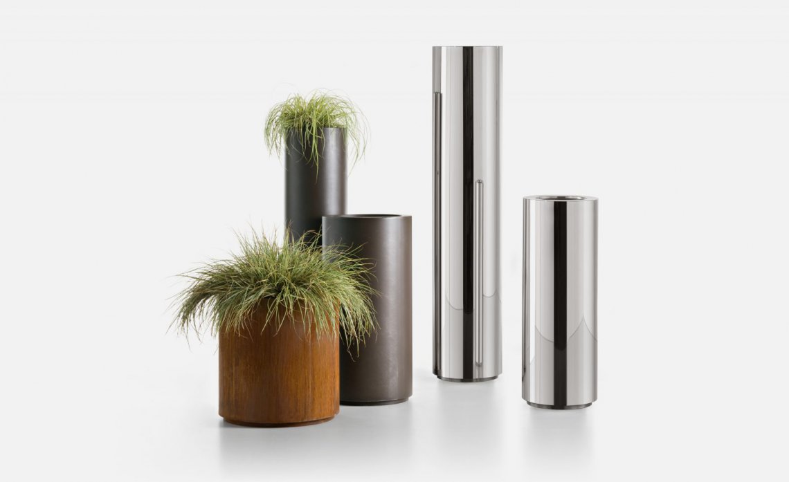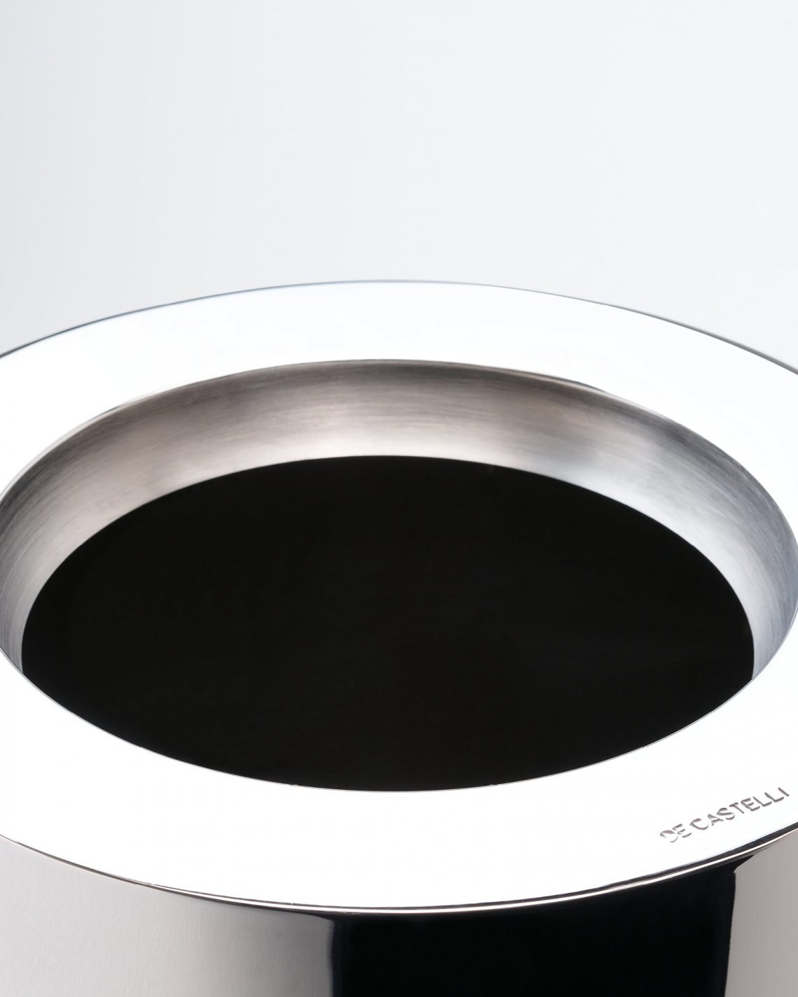 A pure cylindrical shape comes in De Castelli metals and finishes for a series of cachepots with abounding stage presence. In their linear simplicity, these objects become landmarks for the home, not just accessories but also cardinal points that orient the space. In different heights and diameters, they stand alone or make up multi-faceted sets.