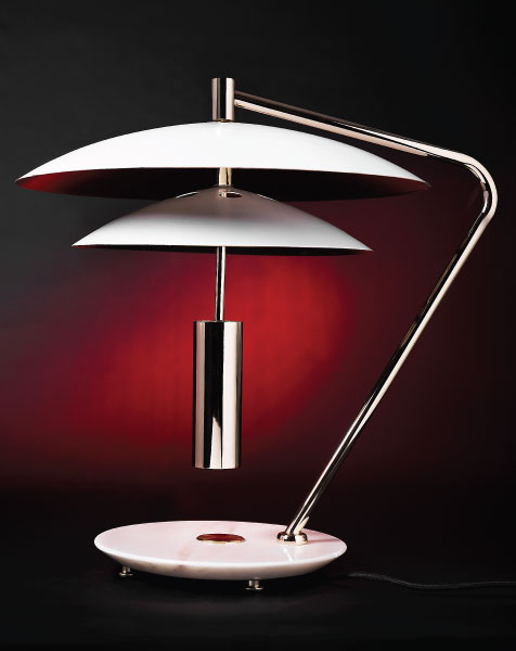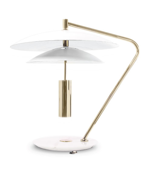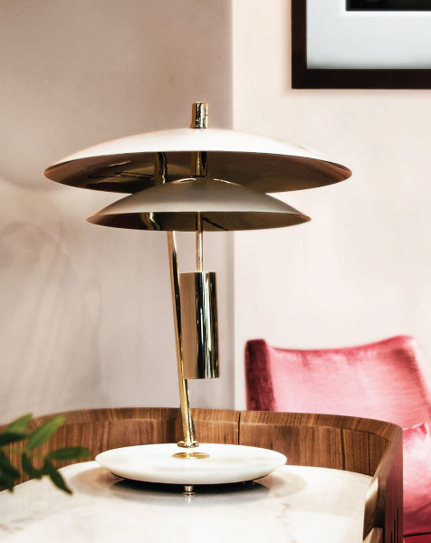 Basie table light is a vintage mid-century lamp with distinct features that make it stand out in any room setting. Handmade in brass, with an aluminum shade and a marble base, it features a top cover that can be customized with any RAL color of your choosing. Looking its best in more formal settings, this graciously large table lamp is the perfect fit for a classic living room or entryway.