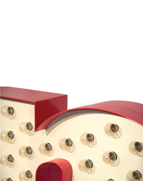 Just like an incomparable and unstopabble design, the marquee letter N has a stylish hit to it. The color matte rose and the glossy light ivory confers to your modern interior project a special lighting effect like no other. Handmade in aluminum and available in a mini version, this soulful piece will bring that splashy and rich effect to any room. With a height of 1 meter, it can be placed on the floor or on the wall. Its 42 bulbs can be controlled with an on-off-on switch, which allows you to turn only a few of them on at a time, it can be customized on demand.