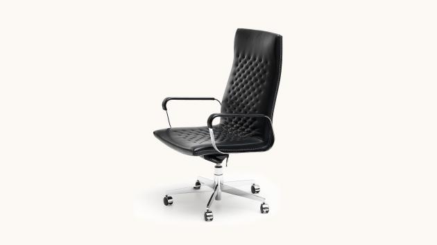 具有1971年的經(jīng)典款DNA的最新行政椅系列。極為精致、優(yōu)雅和豪華的外觀,卻不損失其任何功能性和舒適性。座椅的正面和背面都由匠師們用針線手工精心縫合,手縫的細(xì)節(jié)體現(xiàn)于椅子的兩側(cè)。這個系列提供了多種版本可供選擇:高或低的背椅、有無扶手,懸臂支撐或五星支腳架。