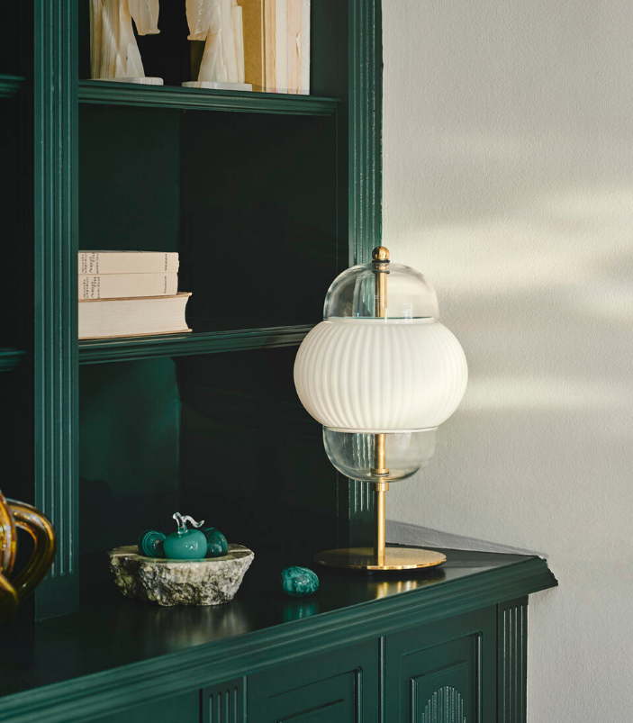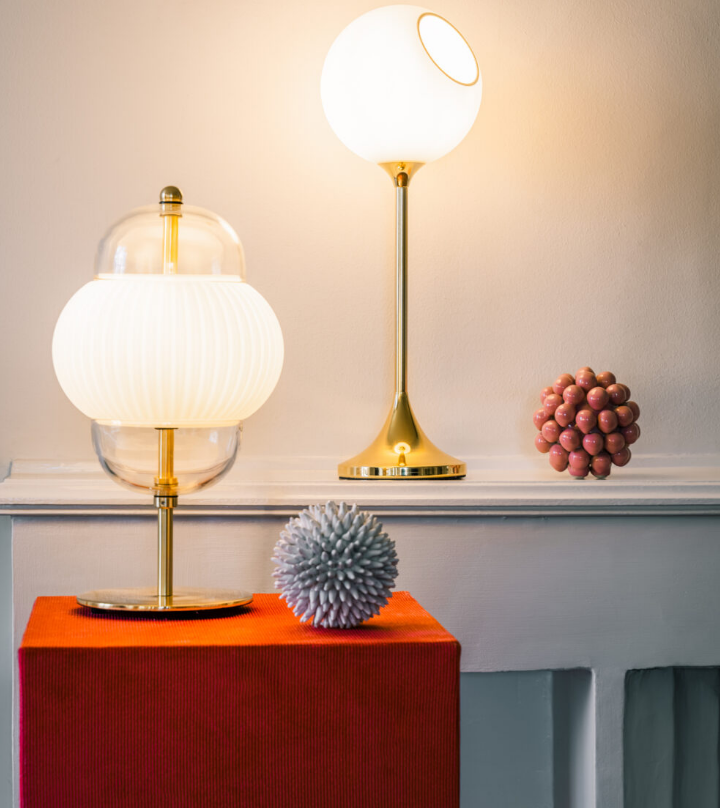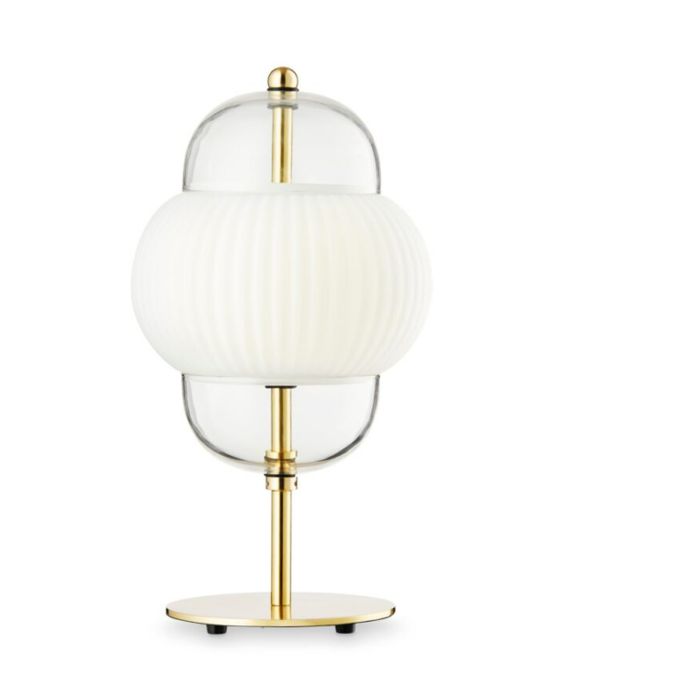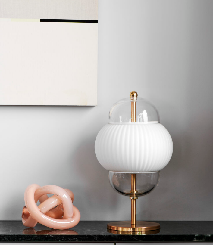 The Shahin table lamp is our take on a classic white pendant. The mix of opal glass, clear glass and brass is inevitable when it comes to lighting. The size of this table lamp makes it a decorative feature for any window sill, console table og bedside table.The lamp is dimmable. Two light bulbs required for this lamp.
